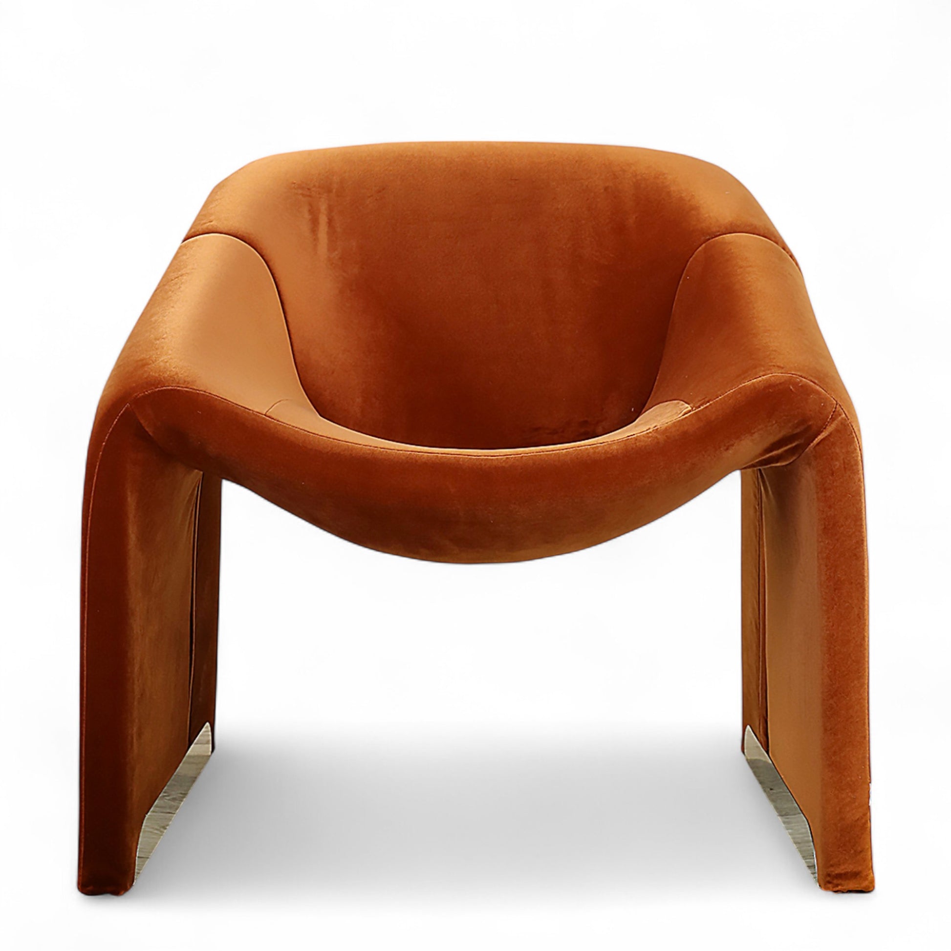 Responding to the need for style and comfort, the Alex Armchair is constructed with injected foam expertly upholstered in beautiful velvet fabric. Alex features a visually inviting shape and a broad, deep seat accented with a touch of gleaming metal at the bottom.