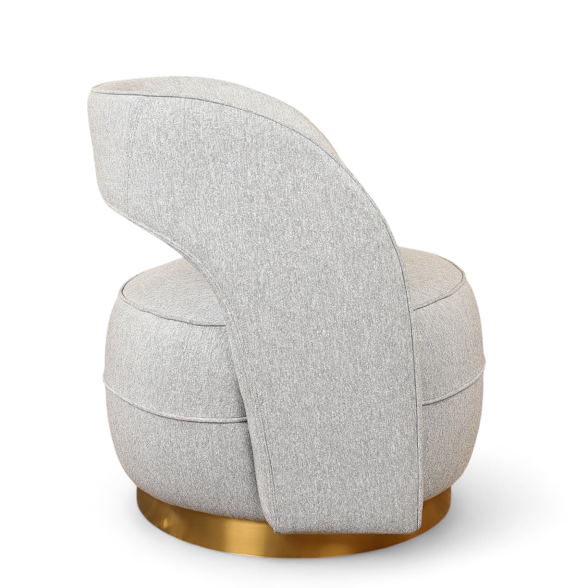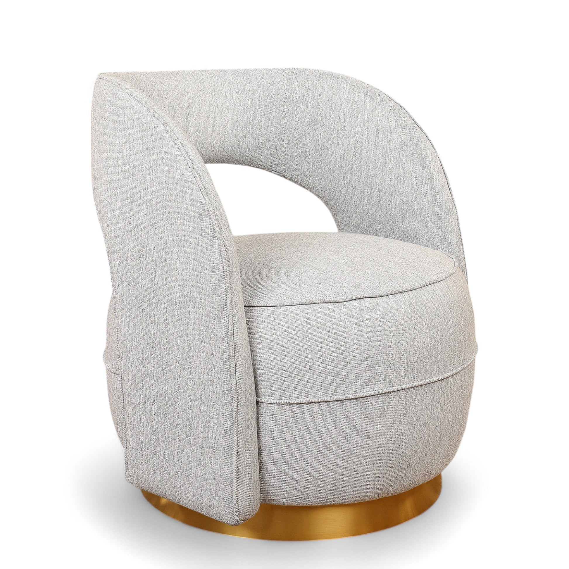 The Armand lounge chair is a stylish way to update the look in any room with its inviting upholstery, rounded form, and gold base. Covered with sophisticated linen fabric it is seated on a stainless steel base finished in gold tone to make it a chic option to complement any decorating style.
