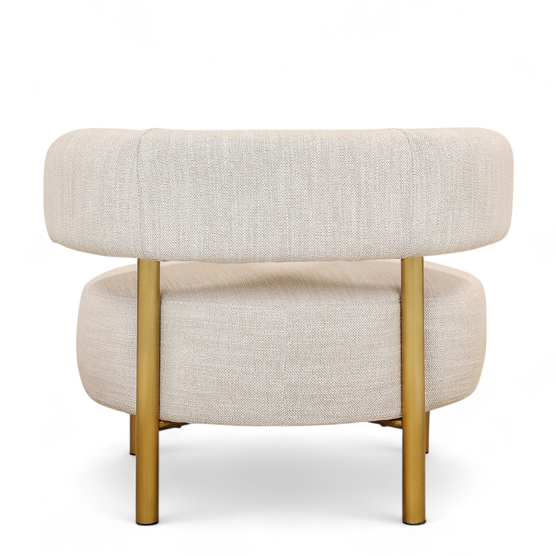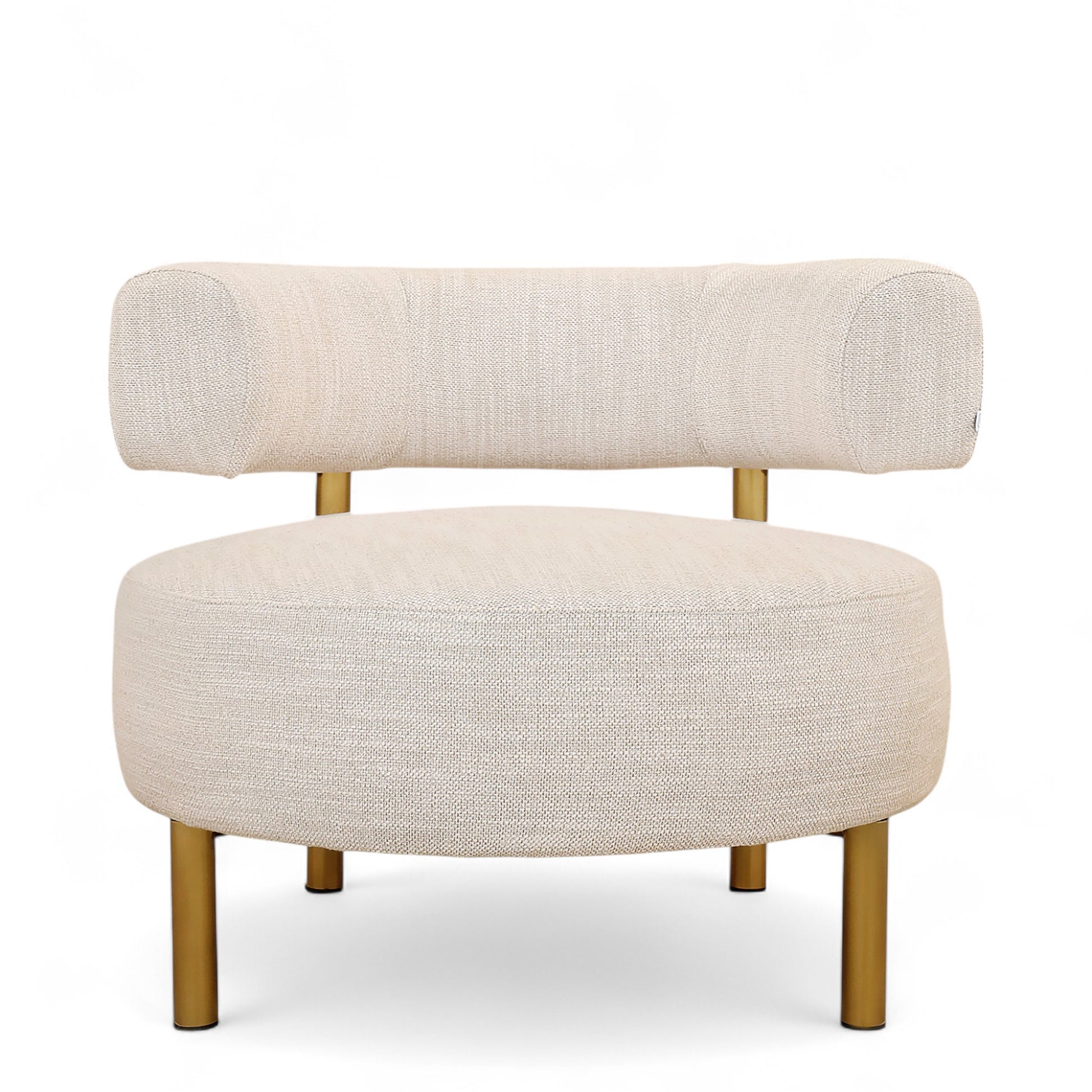 Treat your space to the style and comfort of the Asher Lounge Chair. Wrapped in linen fabric, its plush round seat invites relaxation, while the curved supportive back ensures comfort. Accentuating its modern appeal are the sleek gold-finished legs and back supports, adding a touch of opulence to any space. The Asher Arm Chair is sure to elevate your interior with its blend of comfort, style, and sophistication.