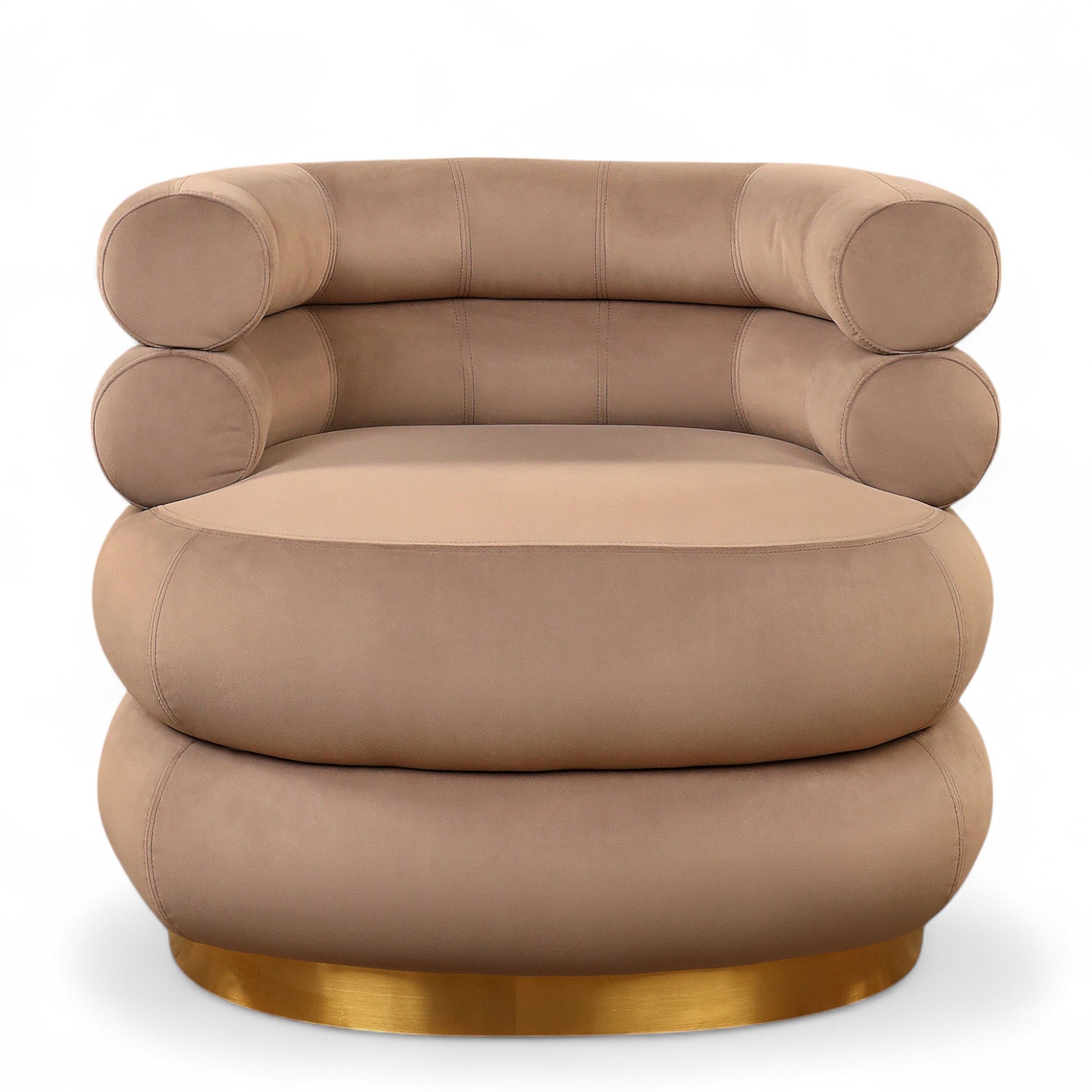 Turn any seating area into an elegant and inviting space with the addition of the Aya lounge chair. Covered in ultra-soft velvet fabric this sculptural chair is seated on a gold-tone metal base for a sleek look in any aesthetic.