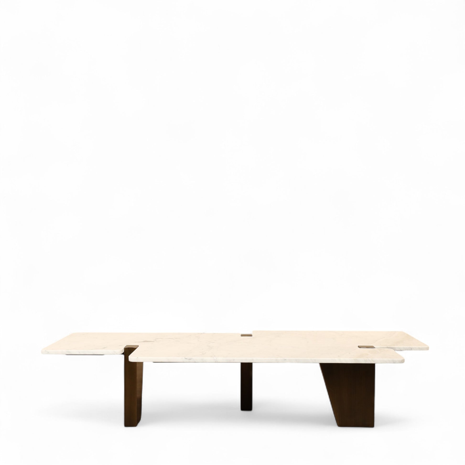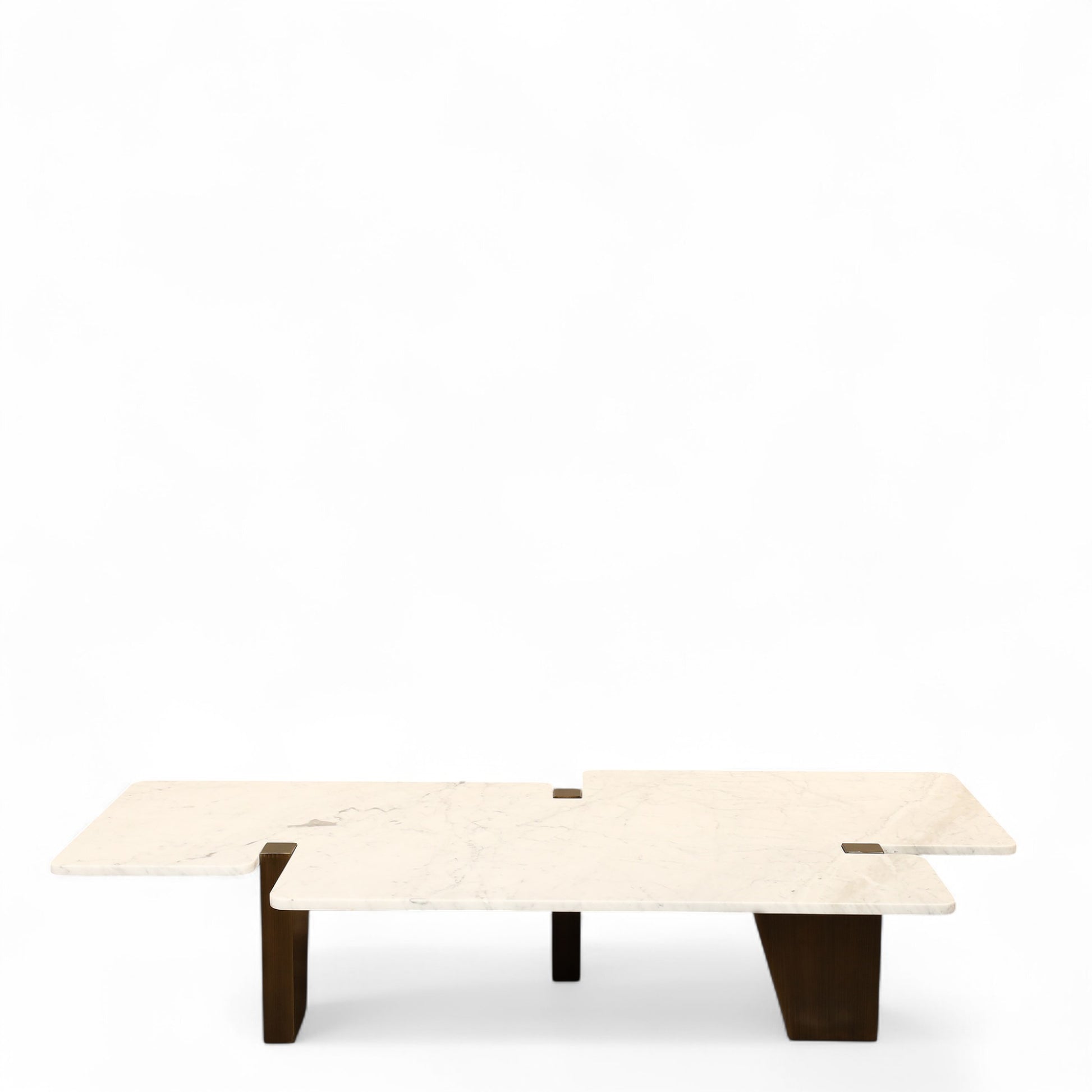 A work of art for the living room or lounge the Beatrix coffee table is expertly crafted in bronze and natural marble for stunning results. The lustrous abstract marble top is supported by three angular legs lending interest and depth to this contemporary piece.
