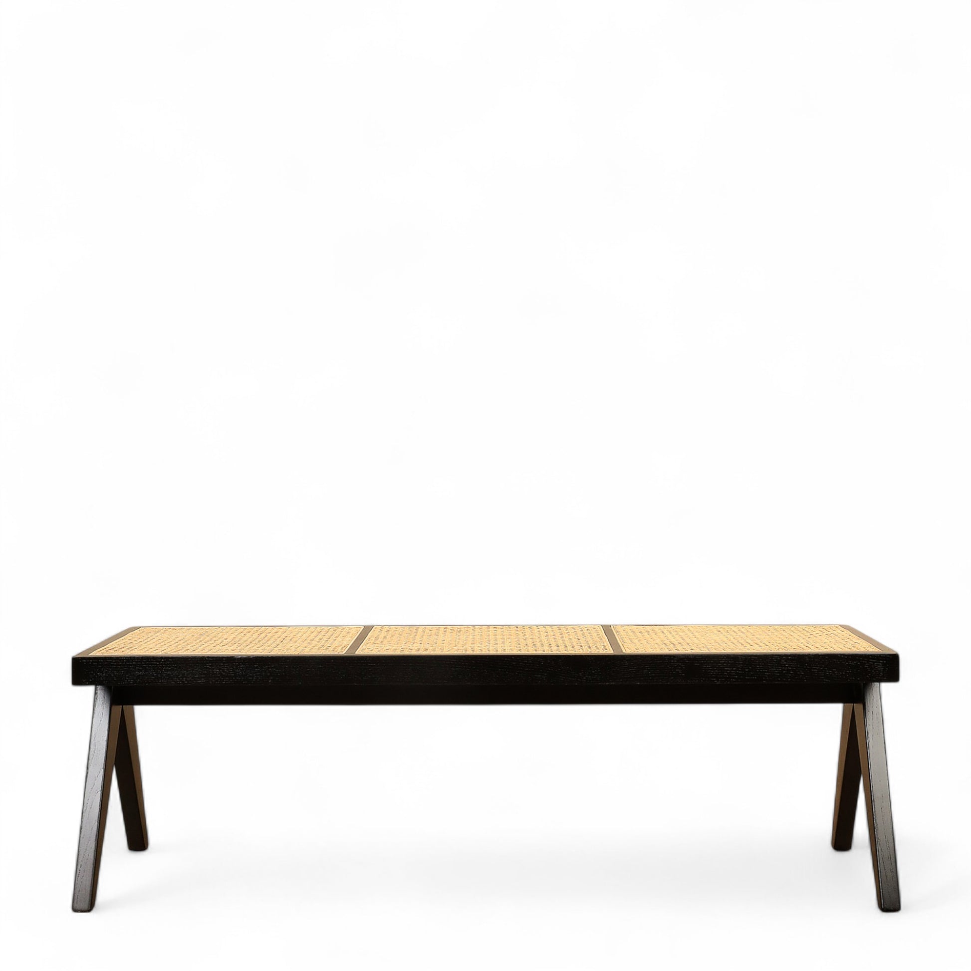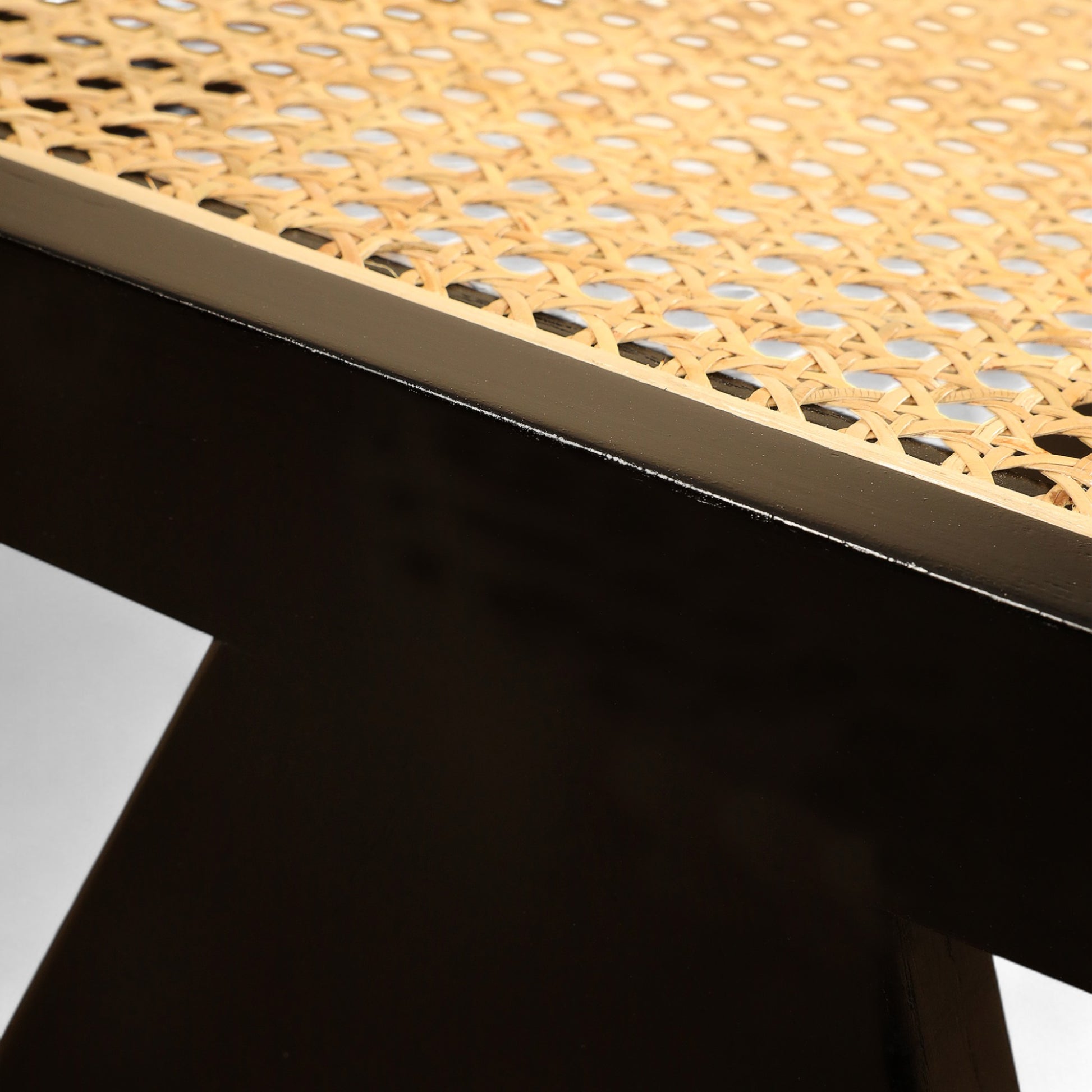 Natural rattan makes for a wonderful contrast against gleaming dark wood on the Bert stool. Its sleek silhouette is perfect for a well-appointed room for extra seating for two people. This stool has dependable support thanks to A-frame legs with a crossbar for stability.