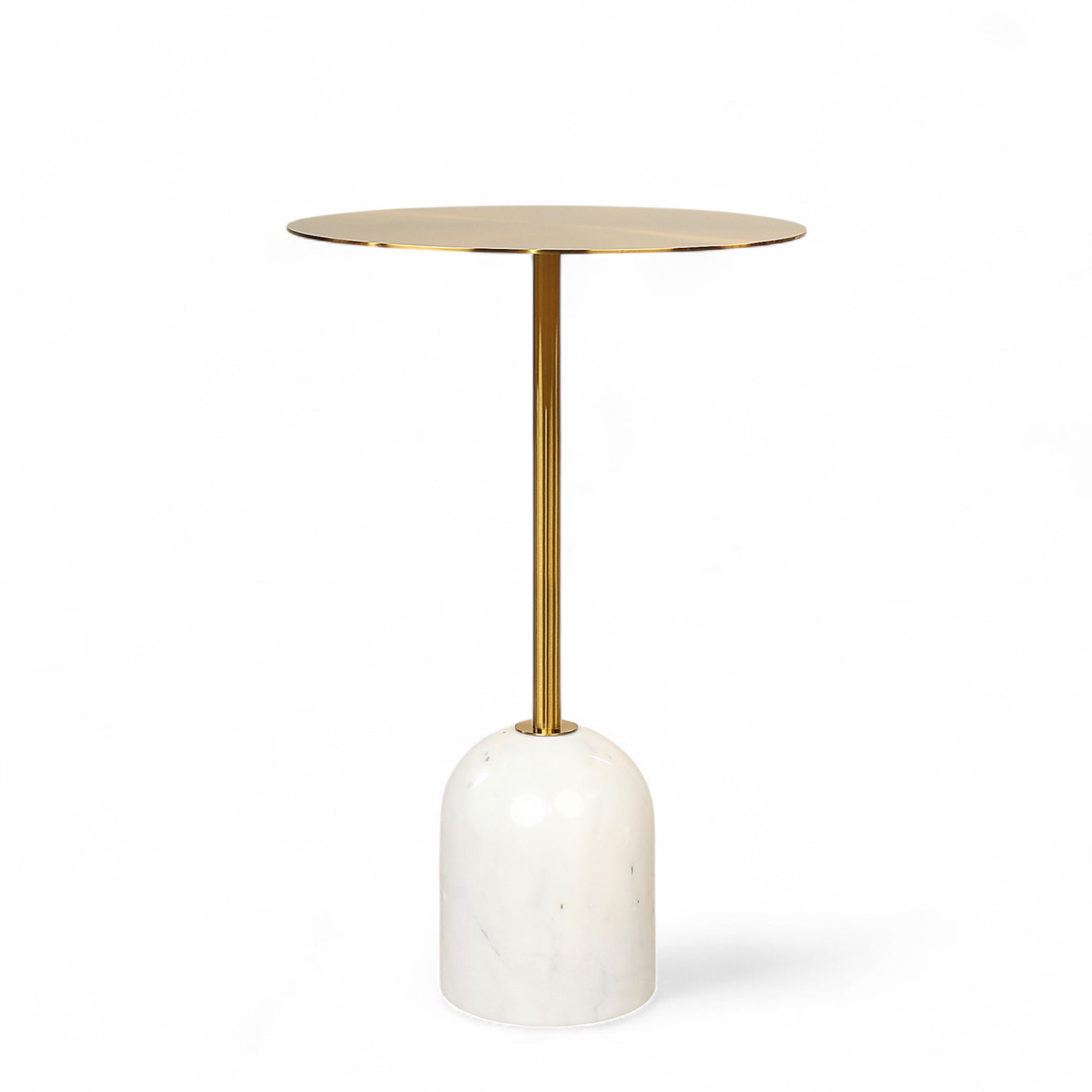 Positioned atop a gleaming marble base, the Charles Side Table is perfectly proportioned to accompany a favorite chair or welcoming sofa. Its opulent gold-finished base and column add a sumptuous element that seamlessly complements various decorative styles.