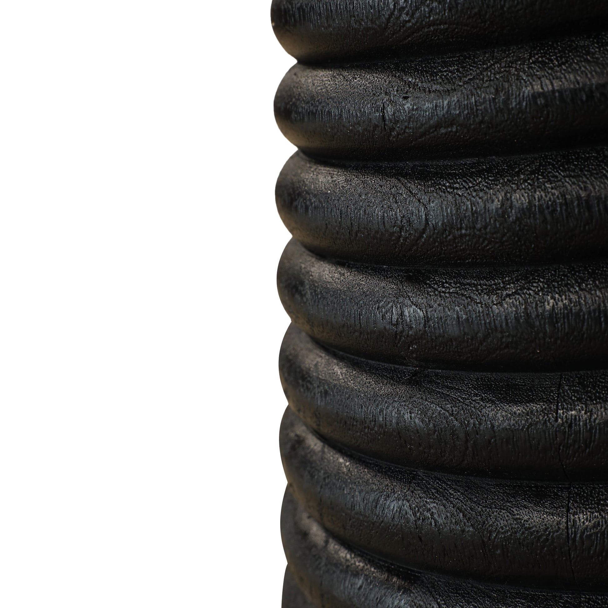 Made from luxurious wood and ratan, this sleek black table is the perfect addition to any living space.