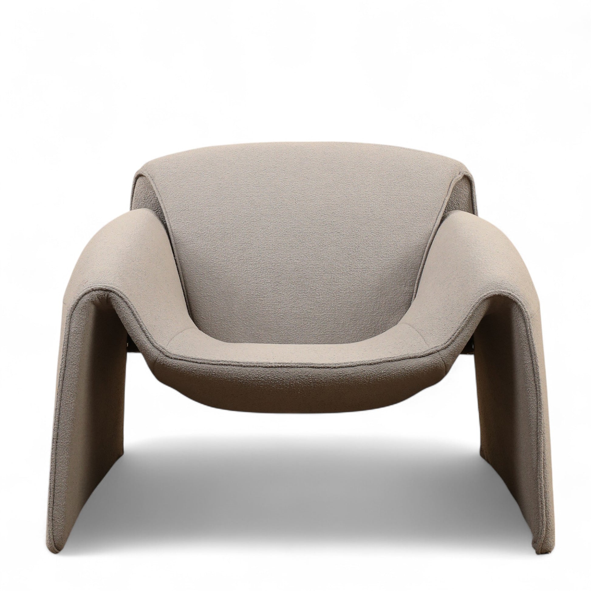 The lounge chair reimagined. Crafted with injected foam and beautifully upholstered in boucle fabric the Colton armchair has a curving design and deep seat that is wonderful for sinking into while the neutral color and sleek style are easy to pair with many decors.