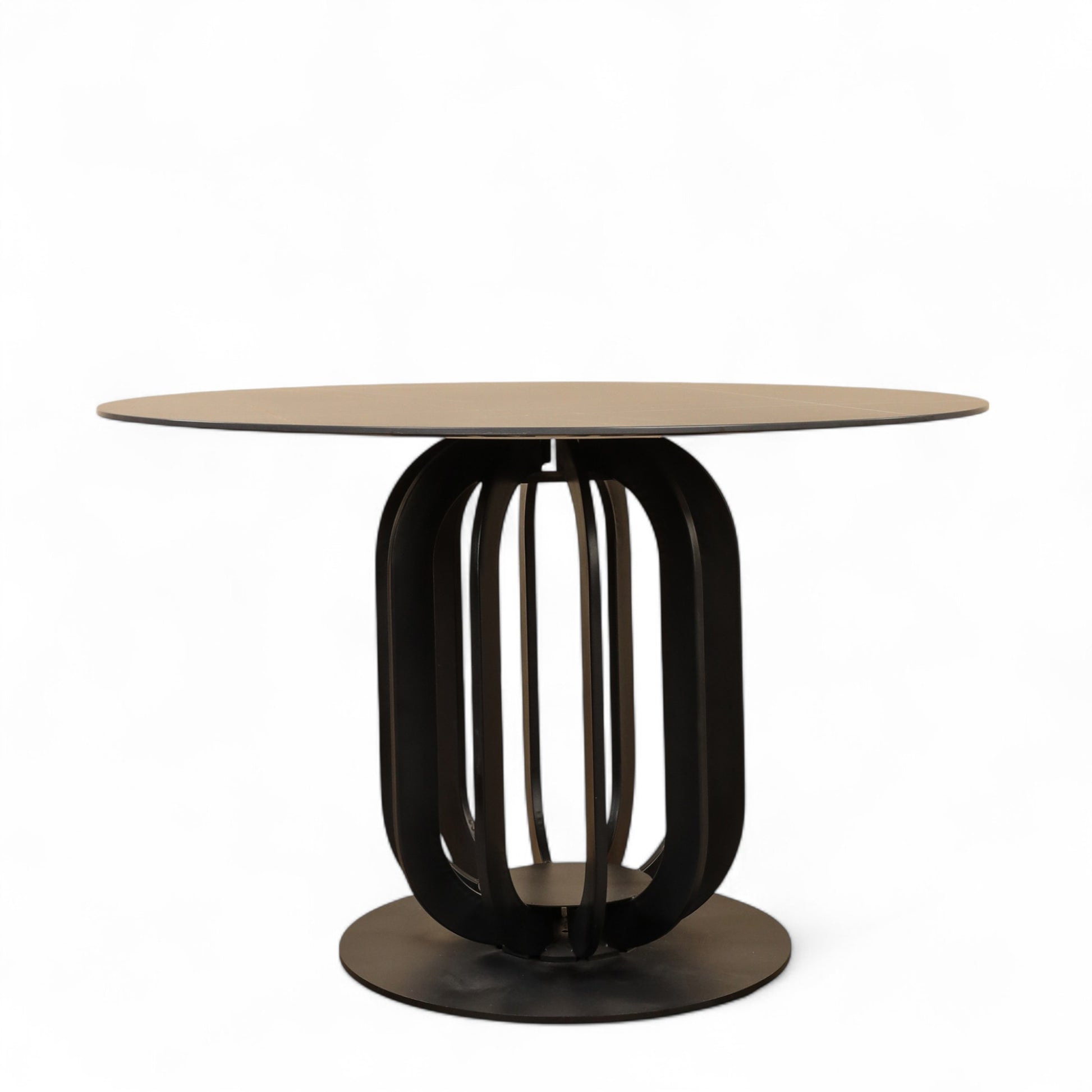 The open pedestal base of the Halo dining table enhances this design's modern feel and flow. Crafted in powder-coated iron the eye-catching base supports a gorgeous sintered stone surface ideal for dining and entertaining.