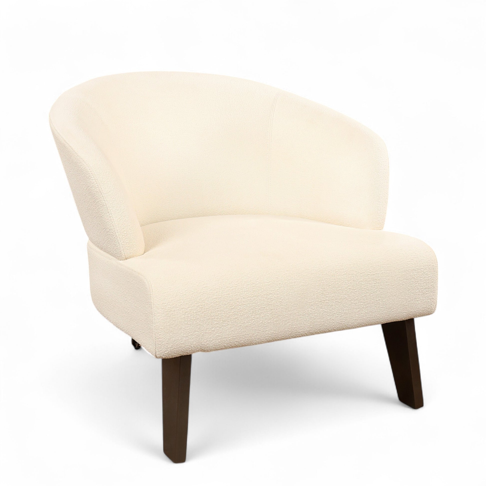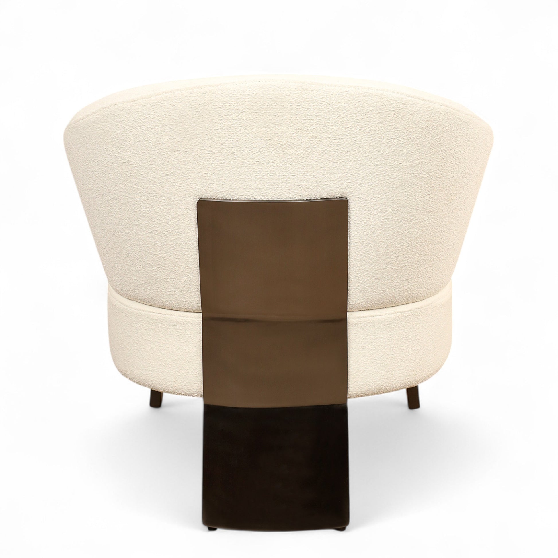This Ilona Armchair is cleverly seated on three legs and takes its cues from mid-century modern style. Streamlined and sophisticated Ilona casts a dynamic silhouette to add style to a seating area. Crafted with stainless steel legs, this contemporary chair is expertly upholstered in boucle fabric for the perfect finishing touch.