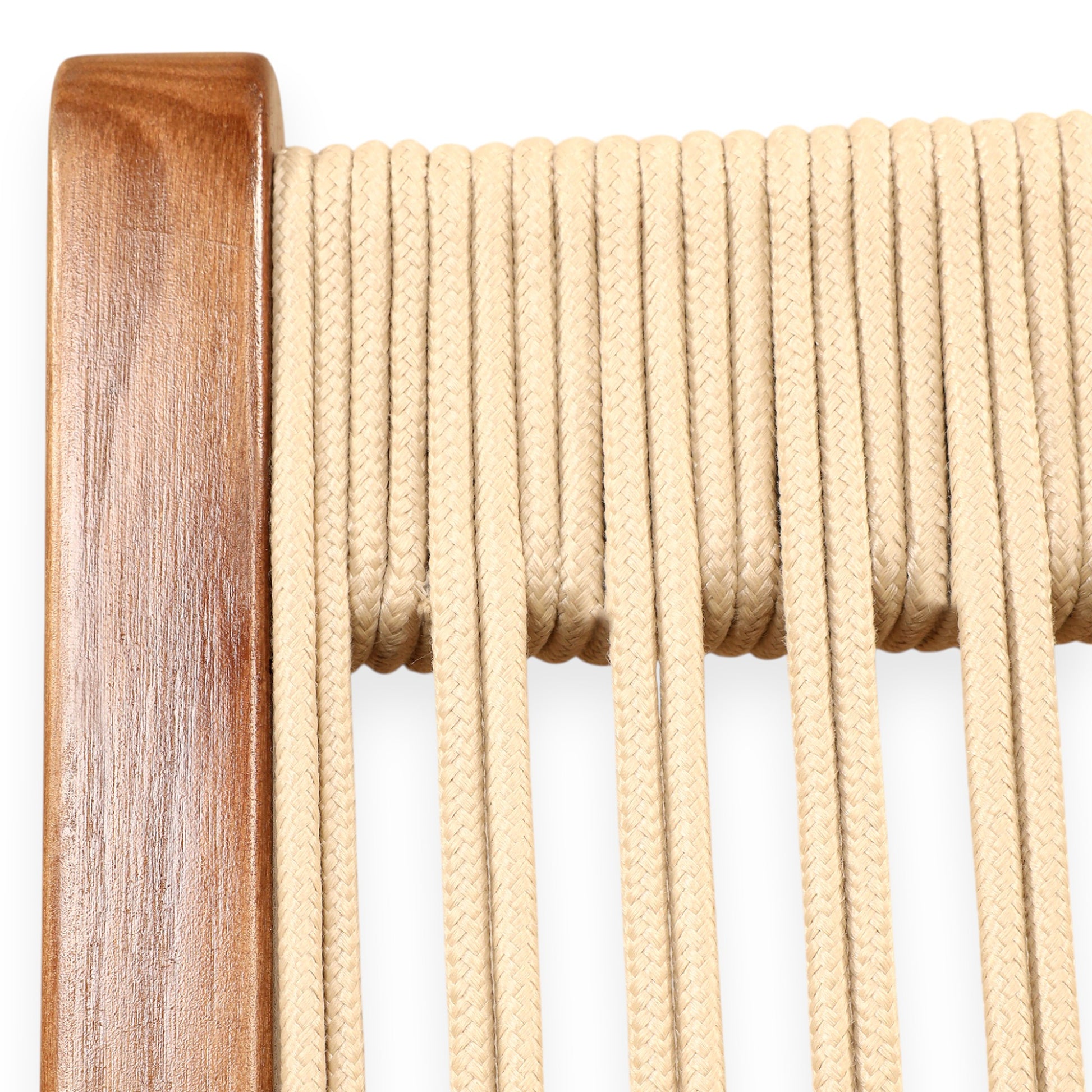 Crafted on a sturdy wood frame, the Jacek Lounge Chair is strung with rope for a relaxing experience. Contemporary, unique, and inviting this low-slung chair is the perfect addition for a casual or beachy vibe in any decor.