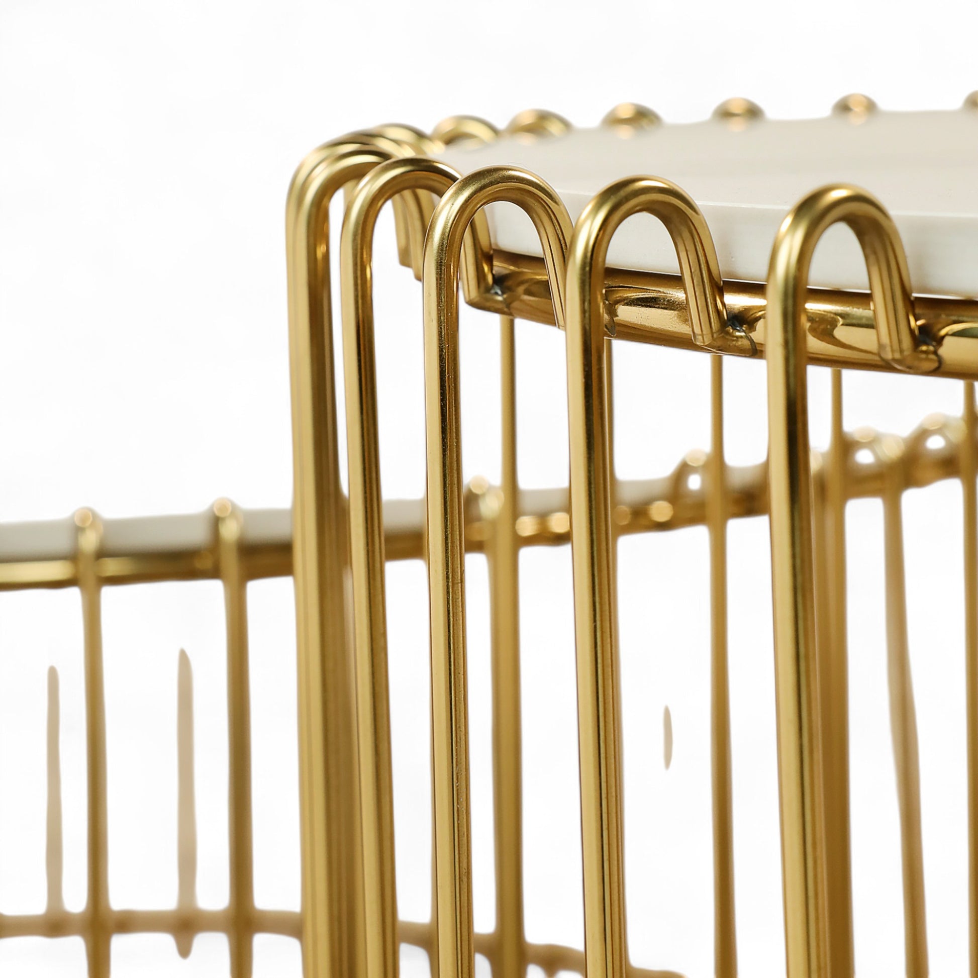 The Juno Side Chrome Gold Stainless Steel & Sintered Stone Coffee and Side Table are a blend of elegance and durability inspired by mid-century modern design. These pieces boast sleek lines and a gleaming gold finish for a touch of glamour. Crafted with chrome gold legs and a sintered stone tabletop, it exudes sophistication while offering exceptional durability.