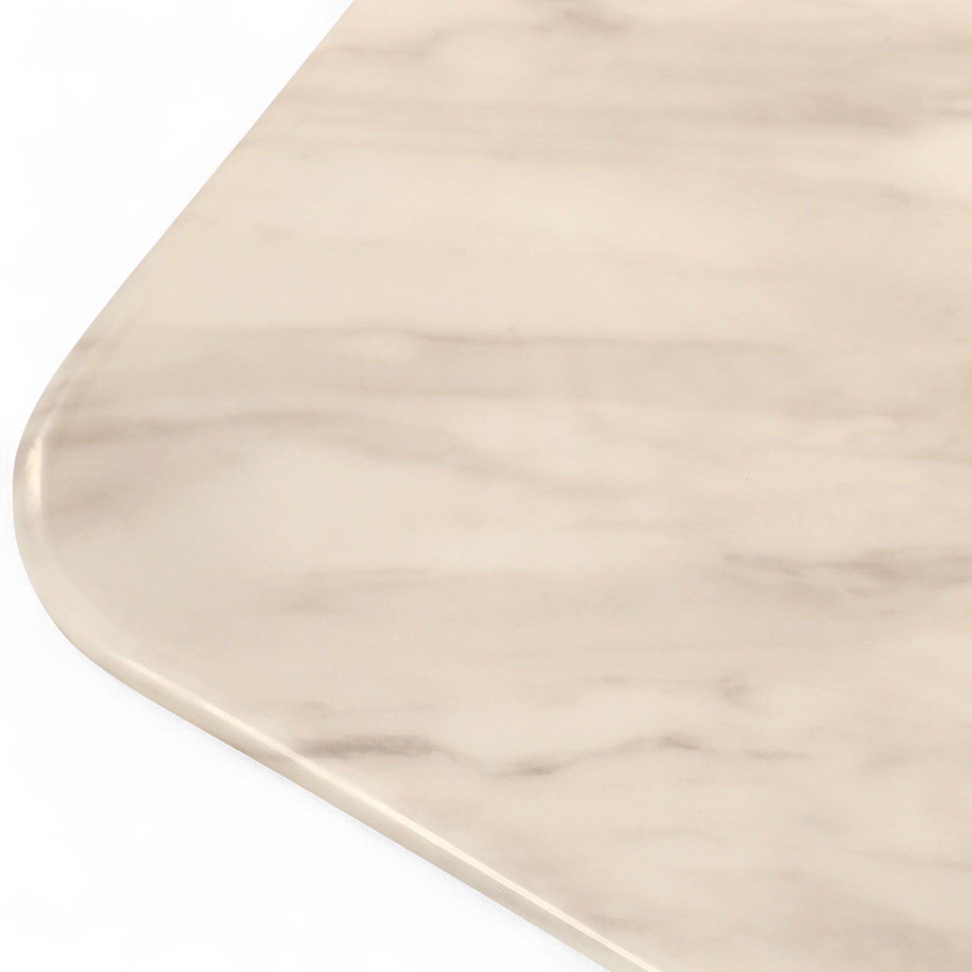 Sleek and highly functional the Lalette Dining Table has a rectangular marble top with gently rounded corners. Drawing inspiration from industrial style this dining table has four triangular gold powder-coated iron legs for understated modern flair.