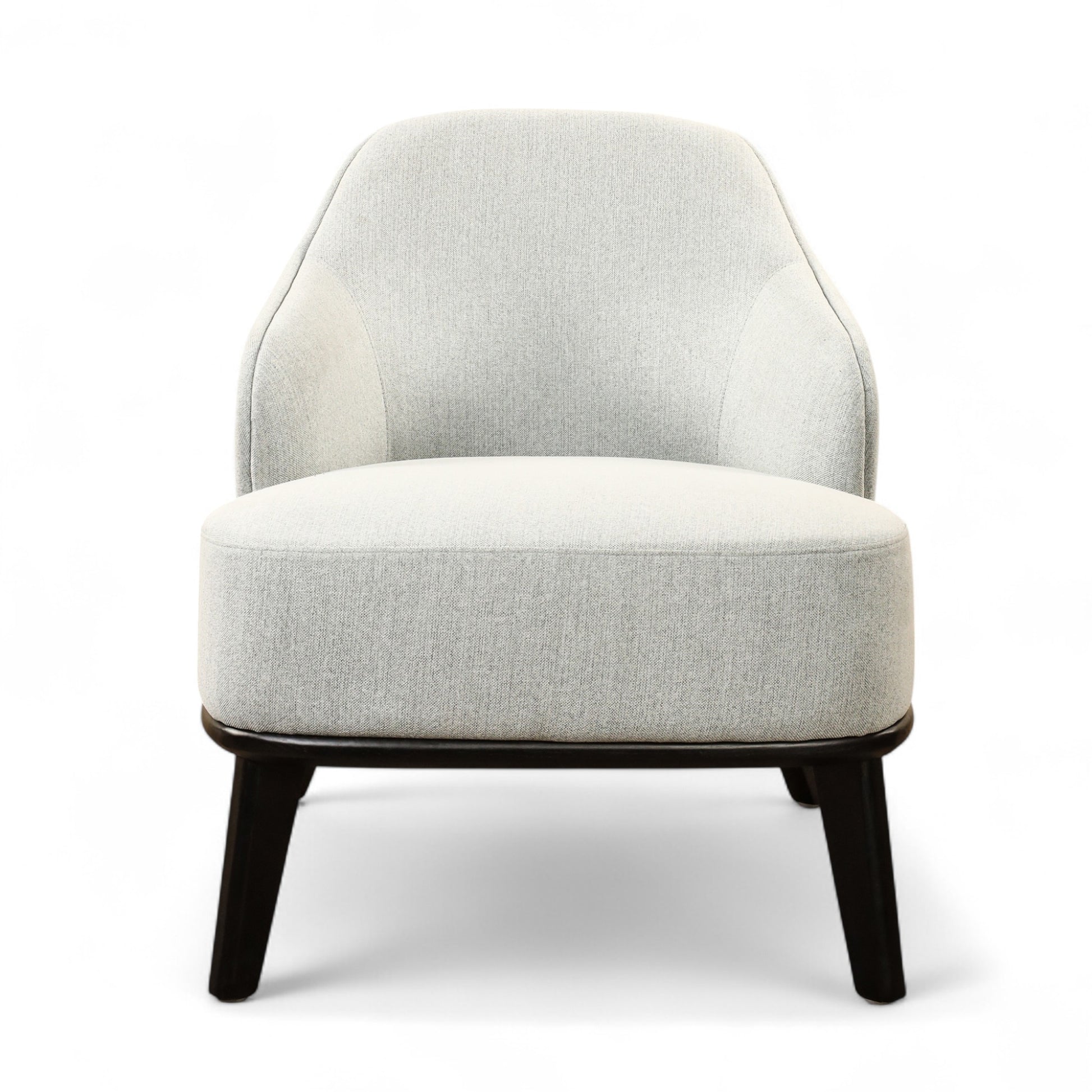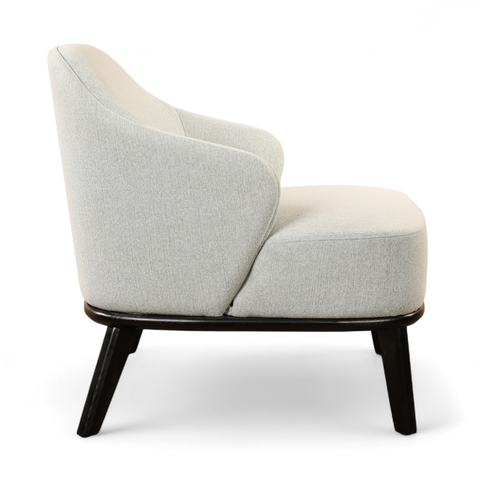 A generously sized seat and curving back beckon on the Leon lounge chair. Inviting and wonderfully comfortable this armchair is upholstered in elegant fabric and finished with gleaming timber legs for visual contrast.