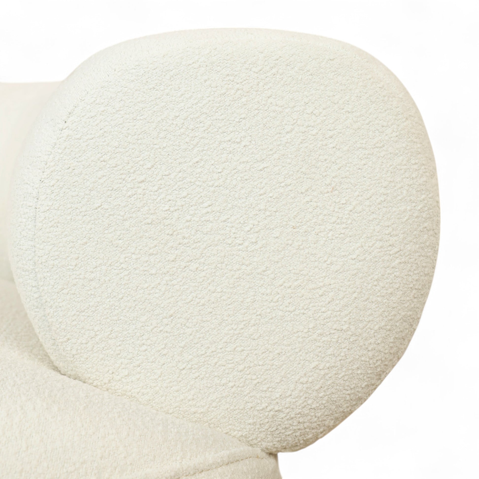 The curvaceous design is wrapped in boucle fabric for a soft texture and dimension on the Livonia Armchair. A rolled U-shaped back offers support on three sides while the seat is low, deep, and easy to sink into.