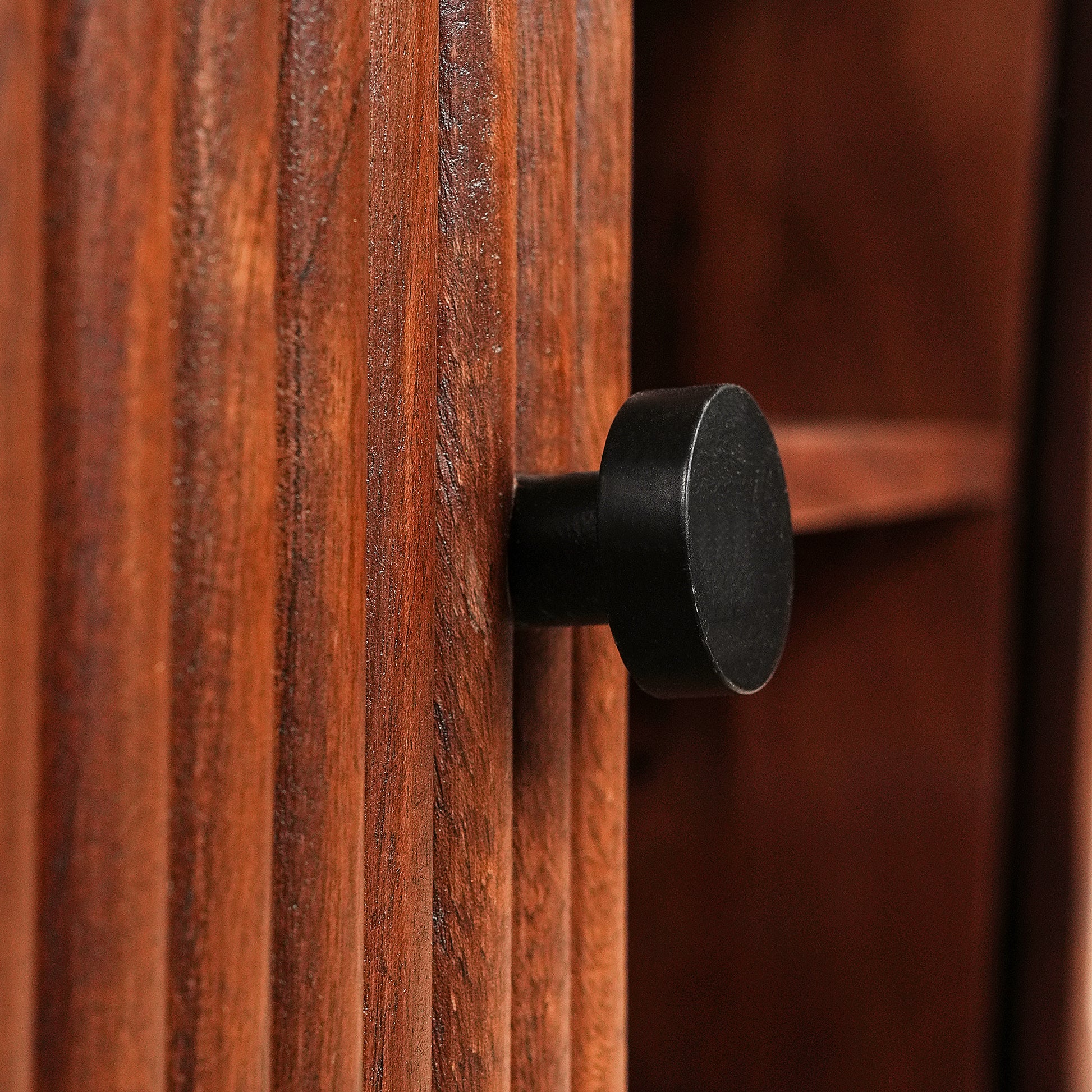 Elevate your space with the Ovo Sideboard, a beautiful piece crafted from acacia wood with a rich dark brown finish. This sideboard features rounded sides, metal legs, and modern style as well as ample storage space behind its doors. Ideal for both contemporary and classic interiors, the Ovo Sideboard offers a perfect balance of form and function.
