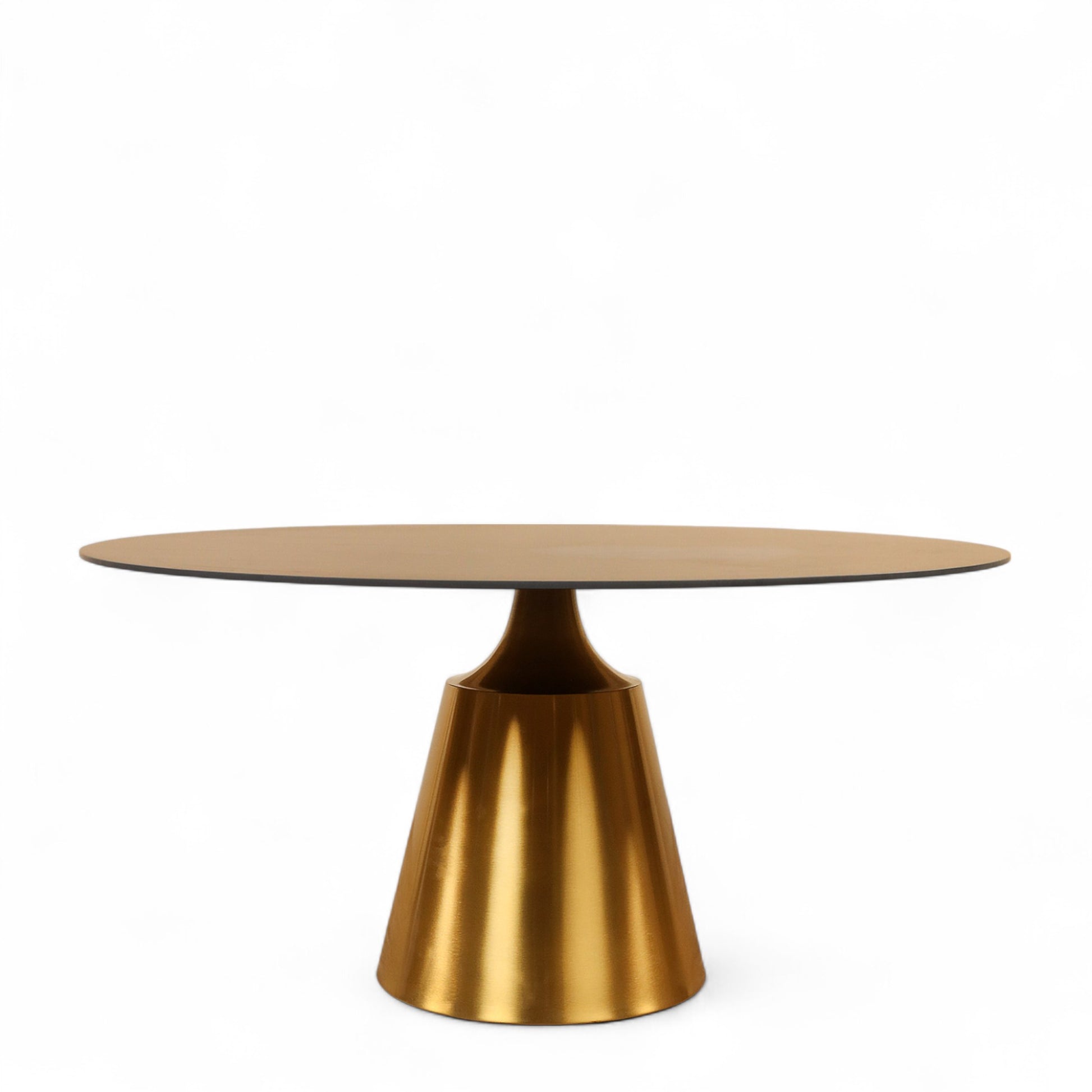Ideal for entertaining the Mabon Dining Table is a shining example of contemporary style. Crafted with a sleek chrome gold stainless steel pedestal base the surface area is gorgeous Black Fuax marble for a clean finish.