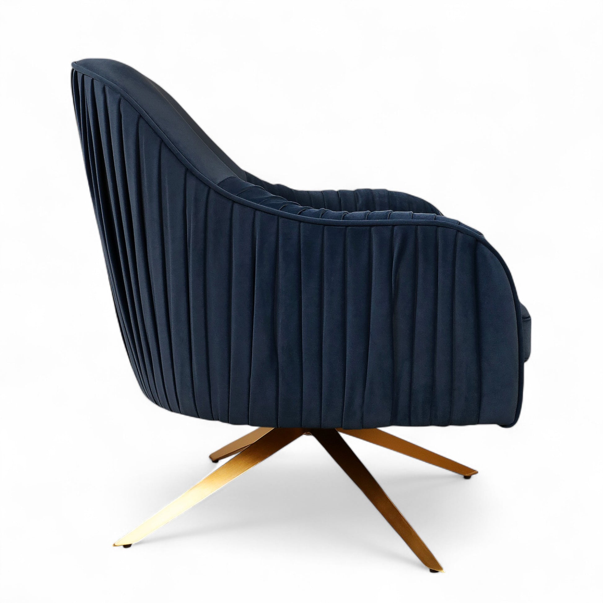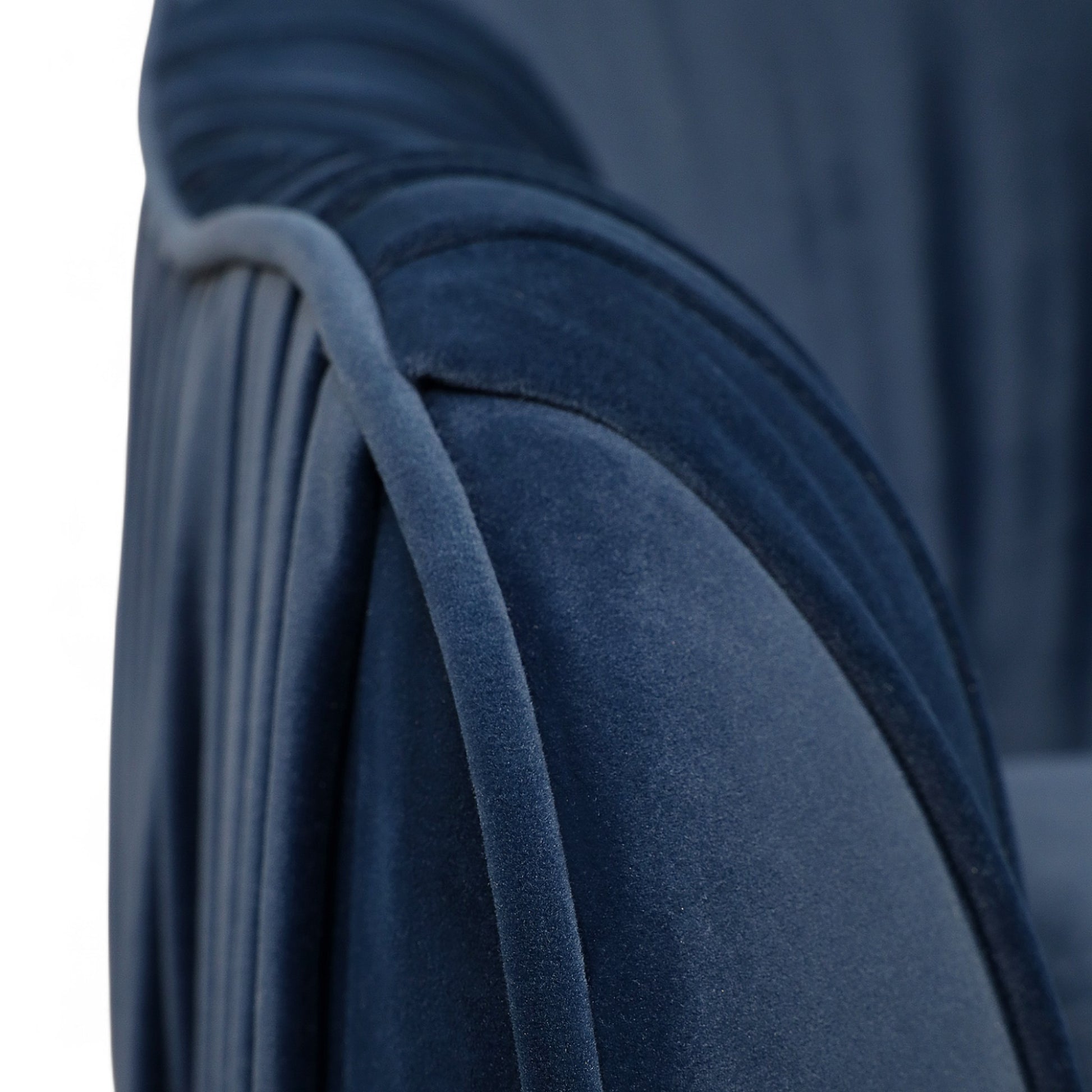 Create a distinctive space with this elegant lounge chair. Upholstered in luxurious velvet fabric the Maud armchair has a comfortable high back, supportive arms, and sleek metal legs to create a comfortable and stylish oasis.