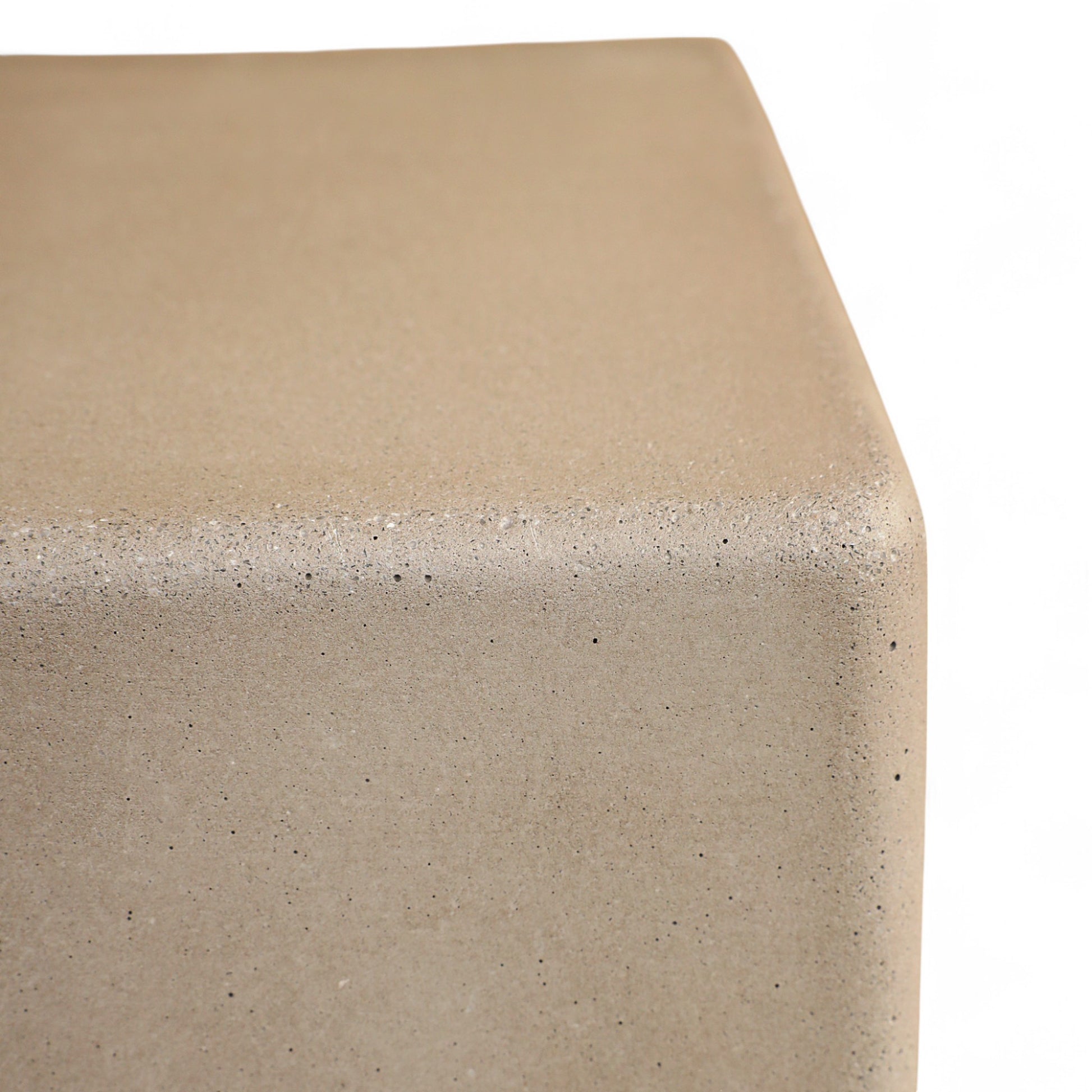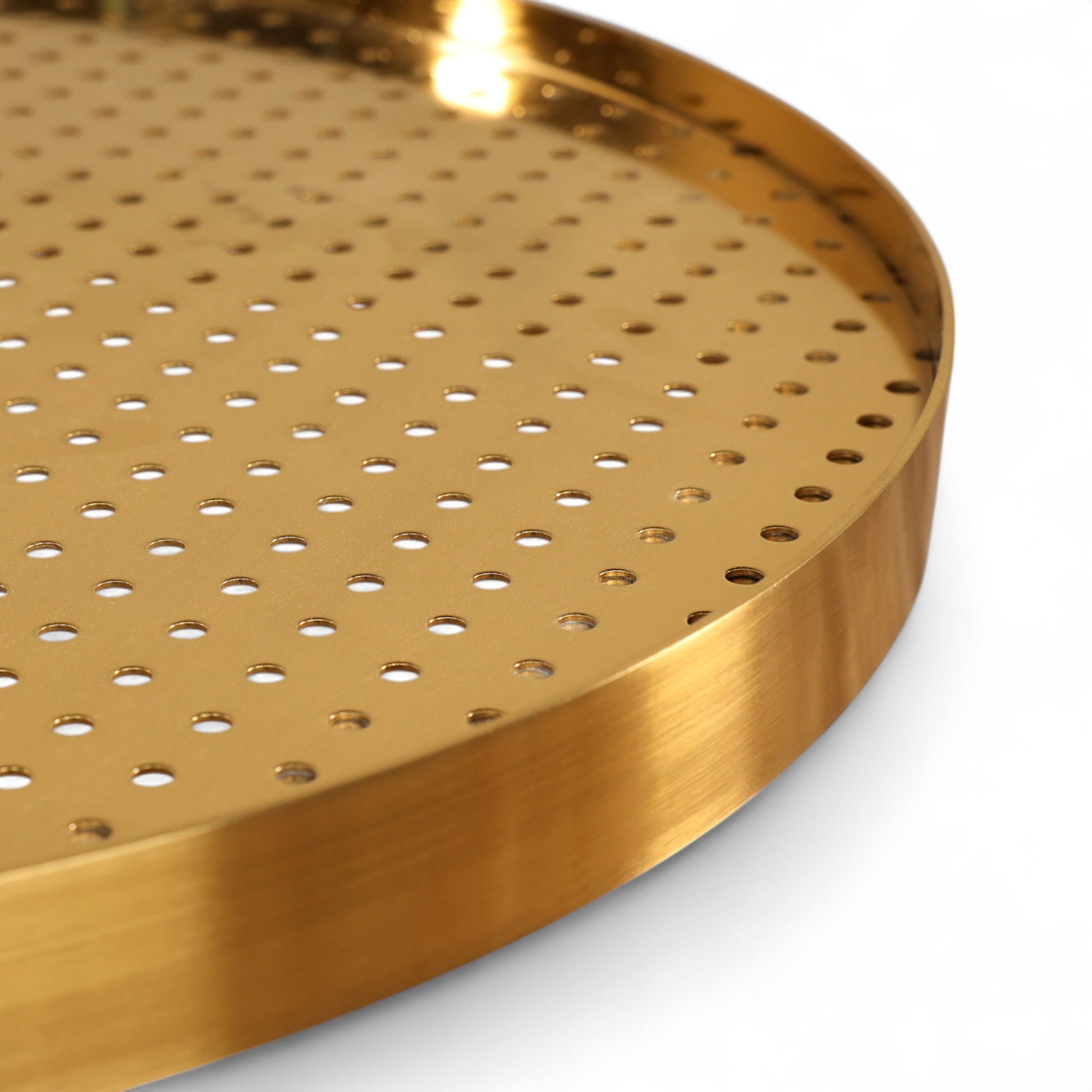 Crafted with industrial elements the Mikki side table boasts a solid concrete base and perforated brass surface area for service in a contemporary seating area.