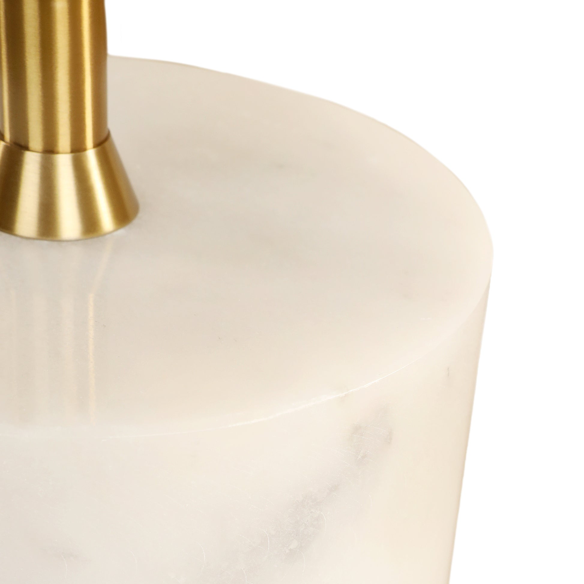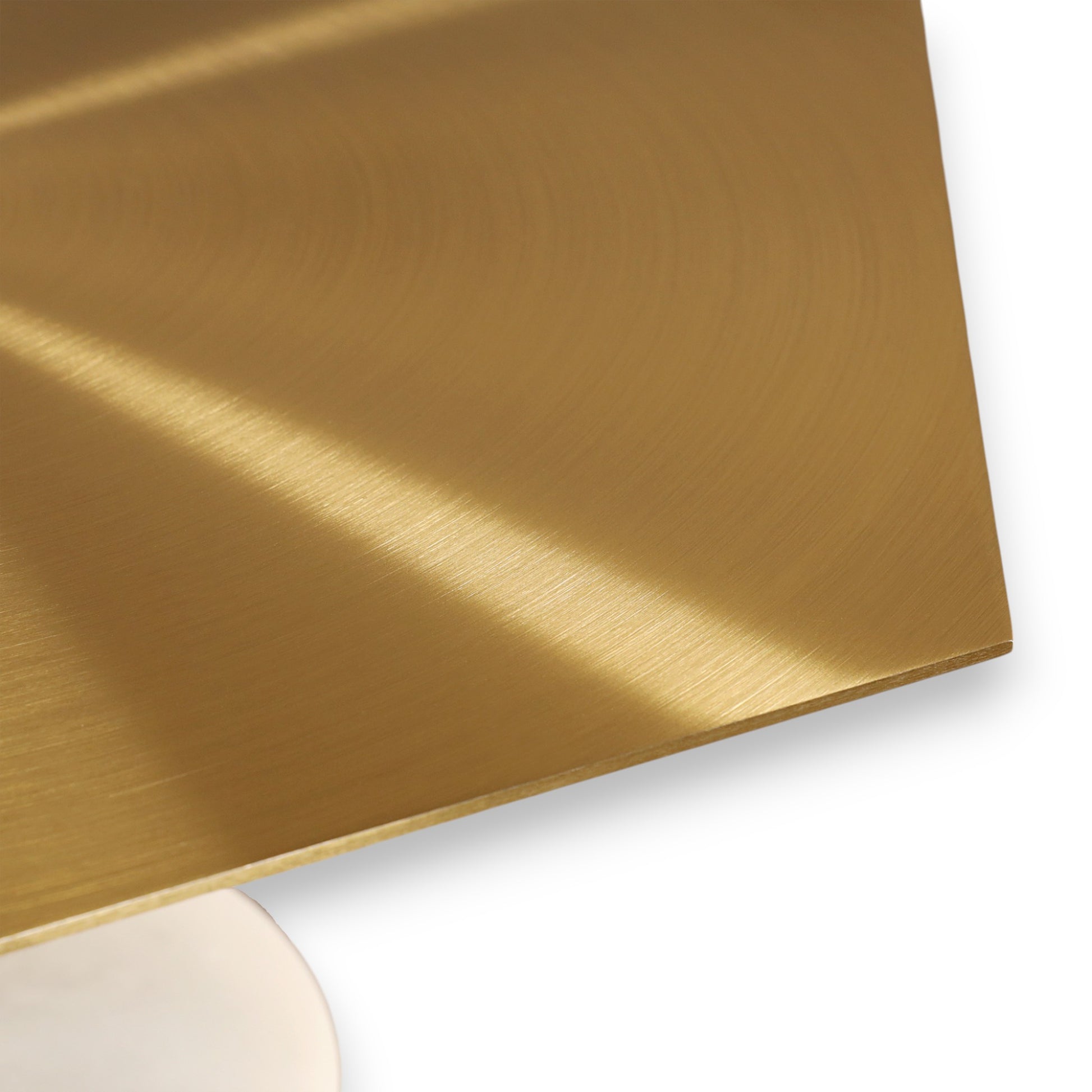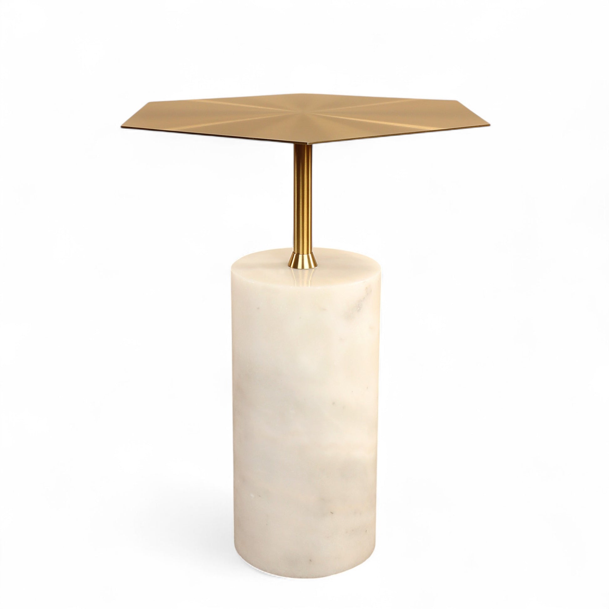 Mitzi is a chic side table excellent for complementing a formal living area. The base is a stunning marble cylinder while the surface is gleaming metal. The sleek base is the perfect accompaniment to the hexagon top.