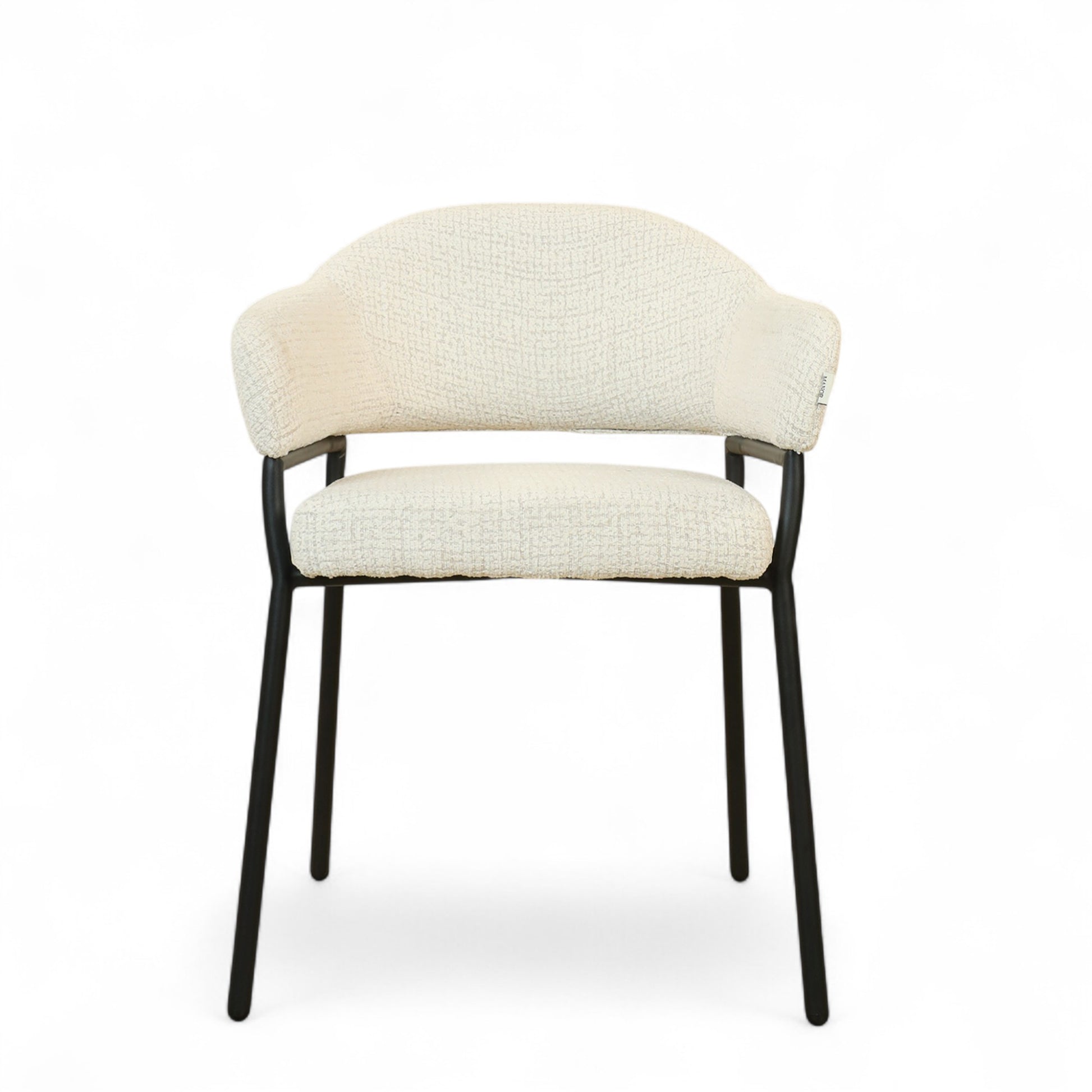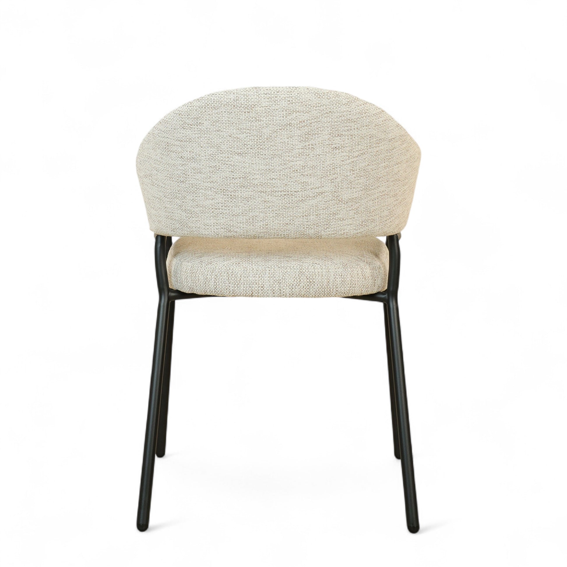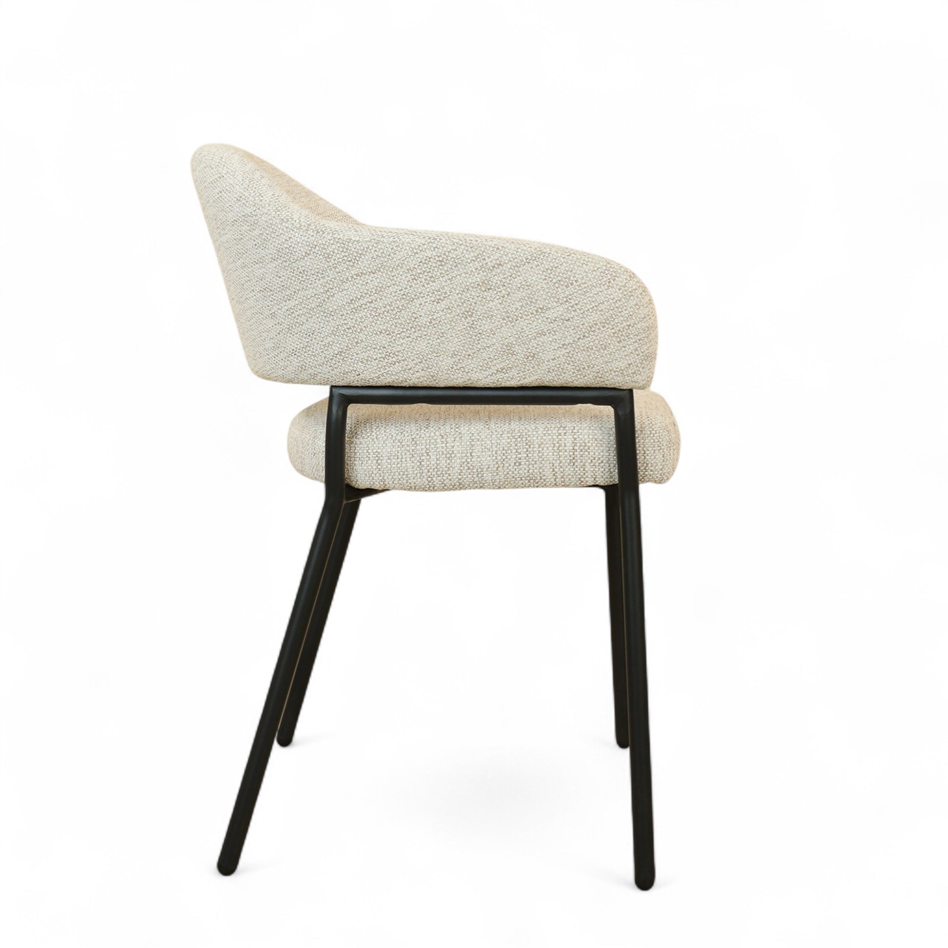 The Orion Dining Chair combines sleek plywood craftsmanship with soft fabric upholstery and a sturdy metal base, offering both comfort and durability.
