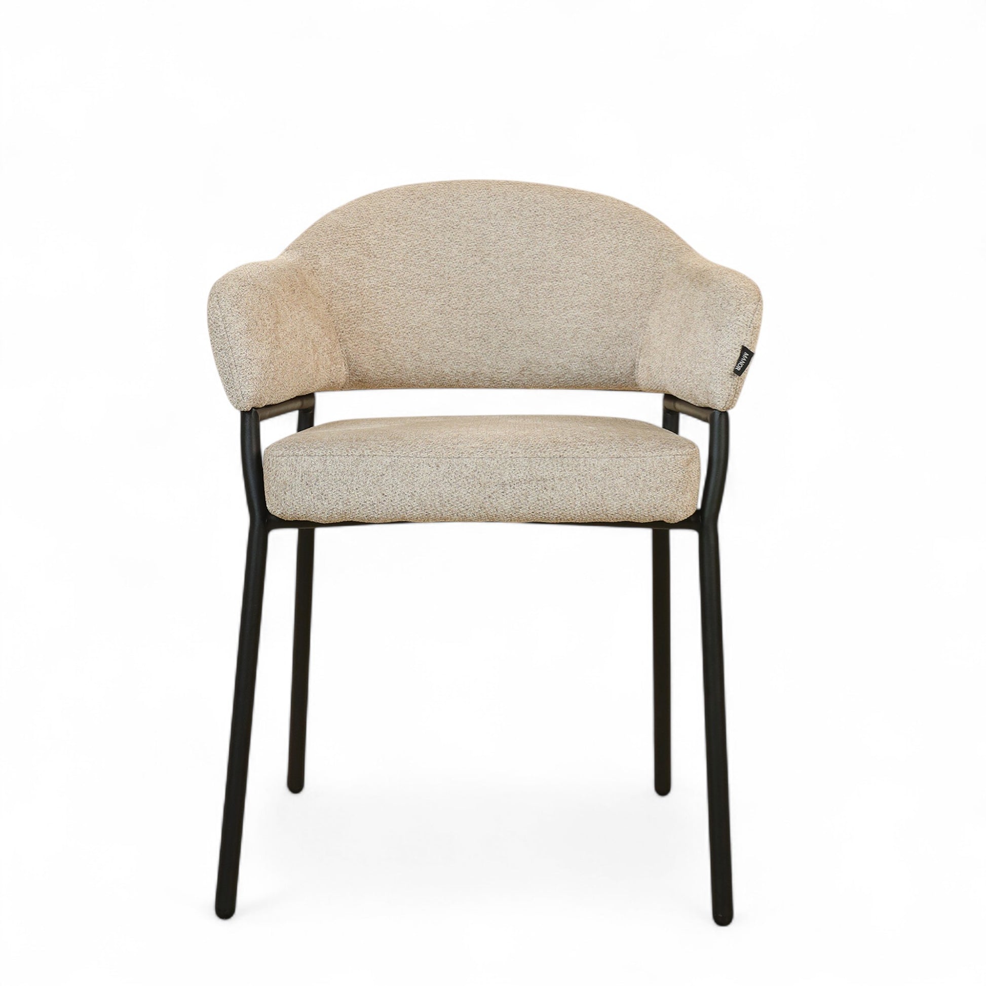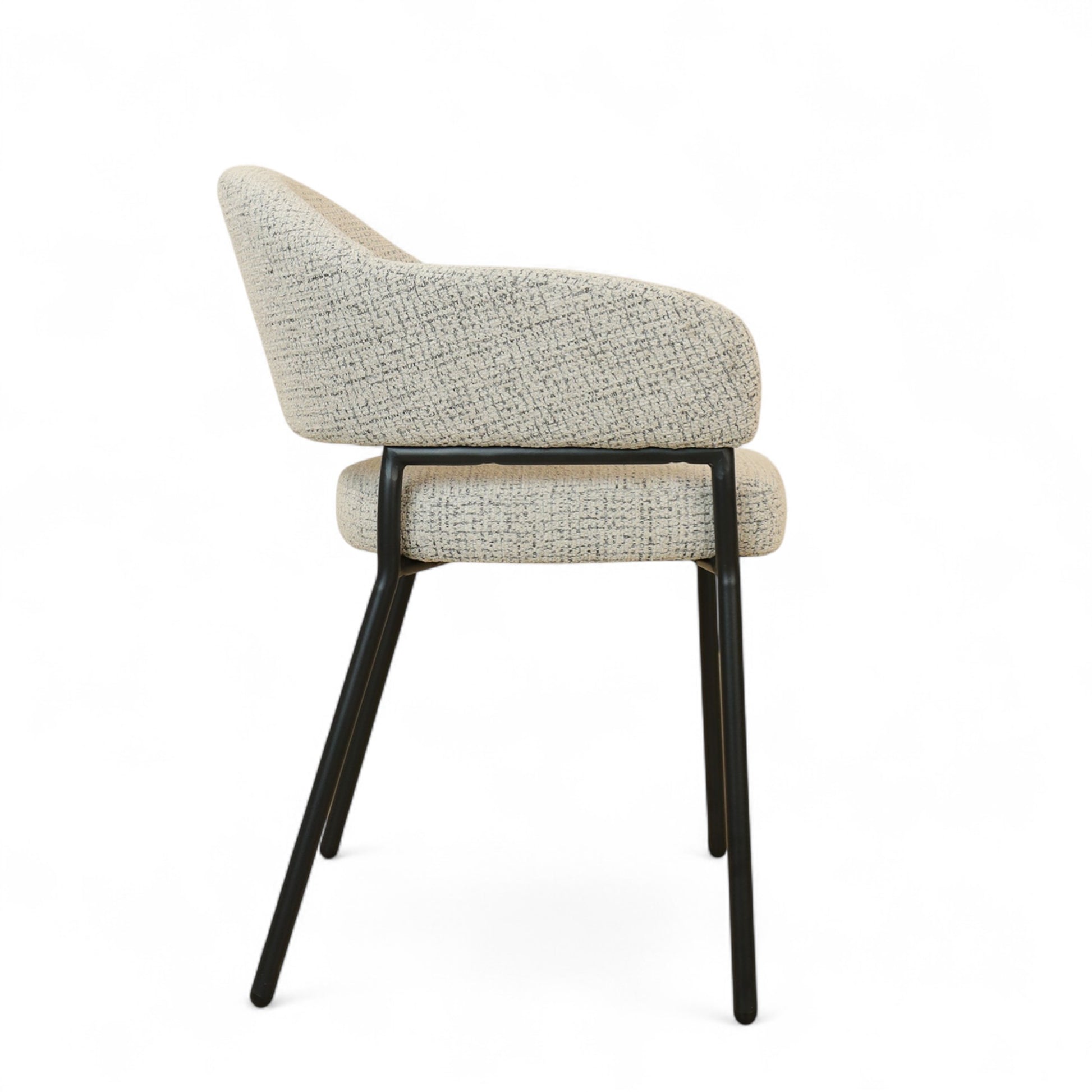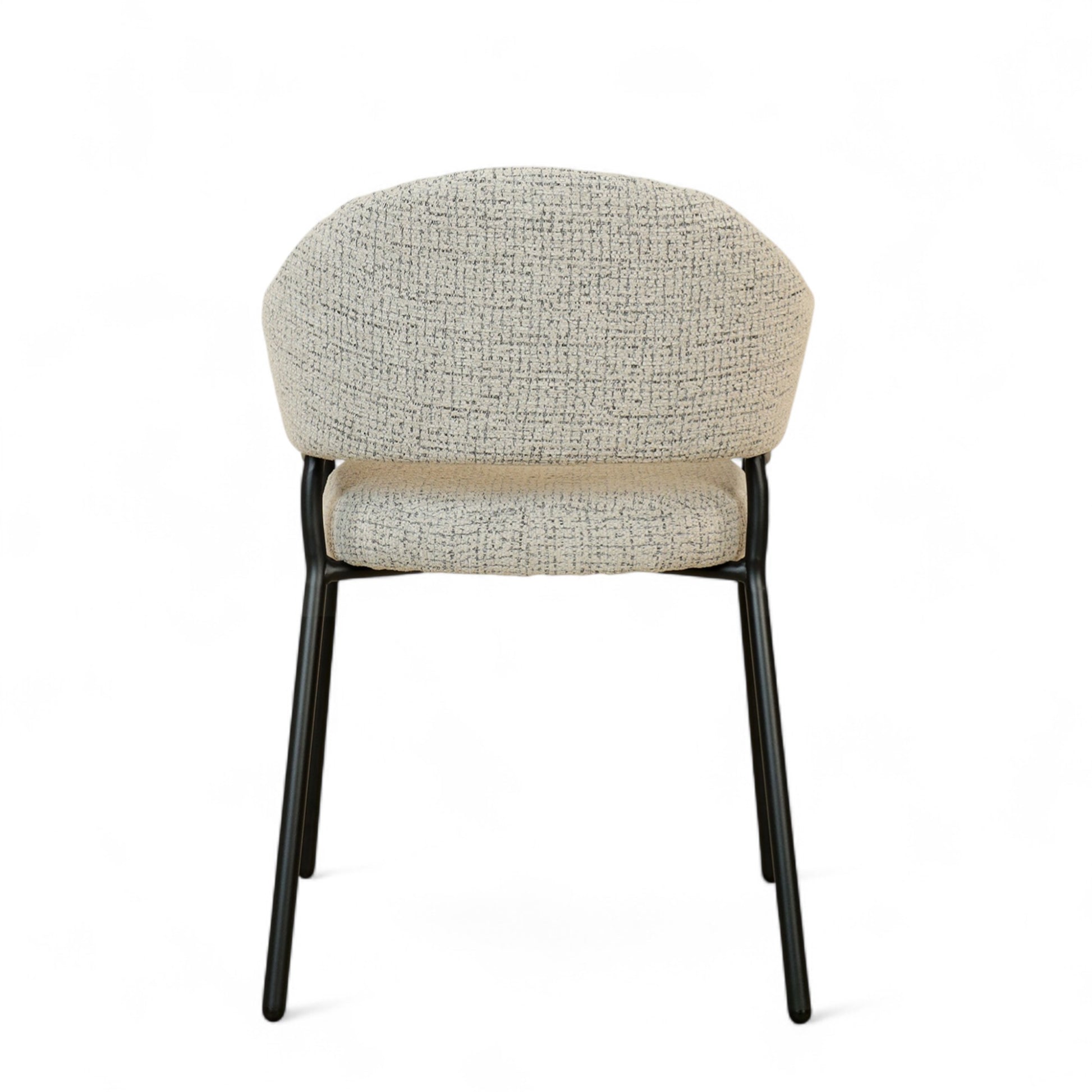 The Orion Dining Chair combines sleek plywood craftsmanship with soft fabric upholstery and a sturdy metal base, offering both comfort and durability.