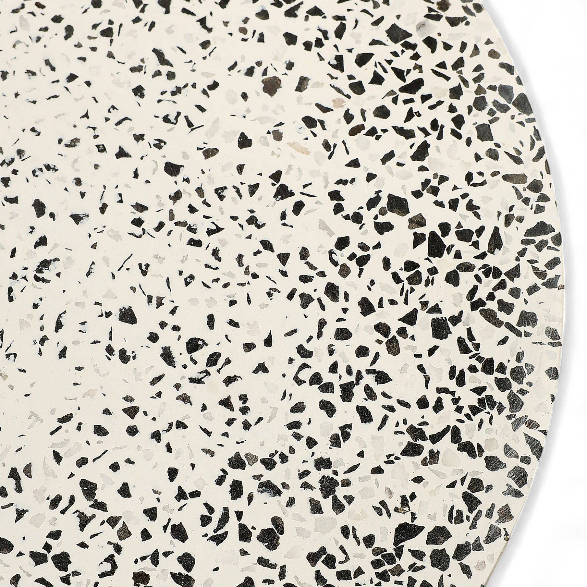 Exquisitely capturing the contemporary aesthetic the Ovid side table features a marble base paired with a slim metal support and a terrazzo top for stunning good looks. Capable of turning heads in appreciation this elegant side table is certain to become a focal point.