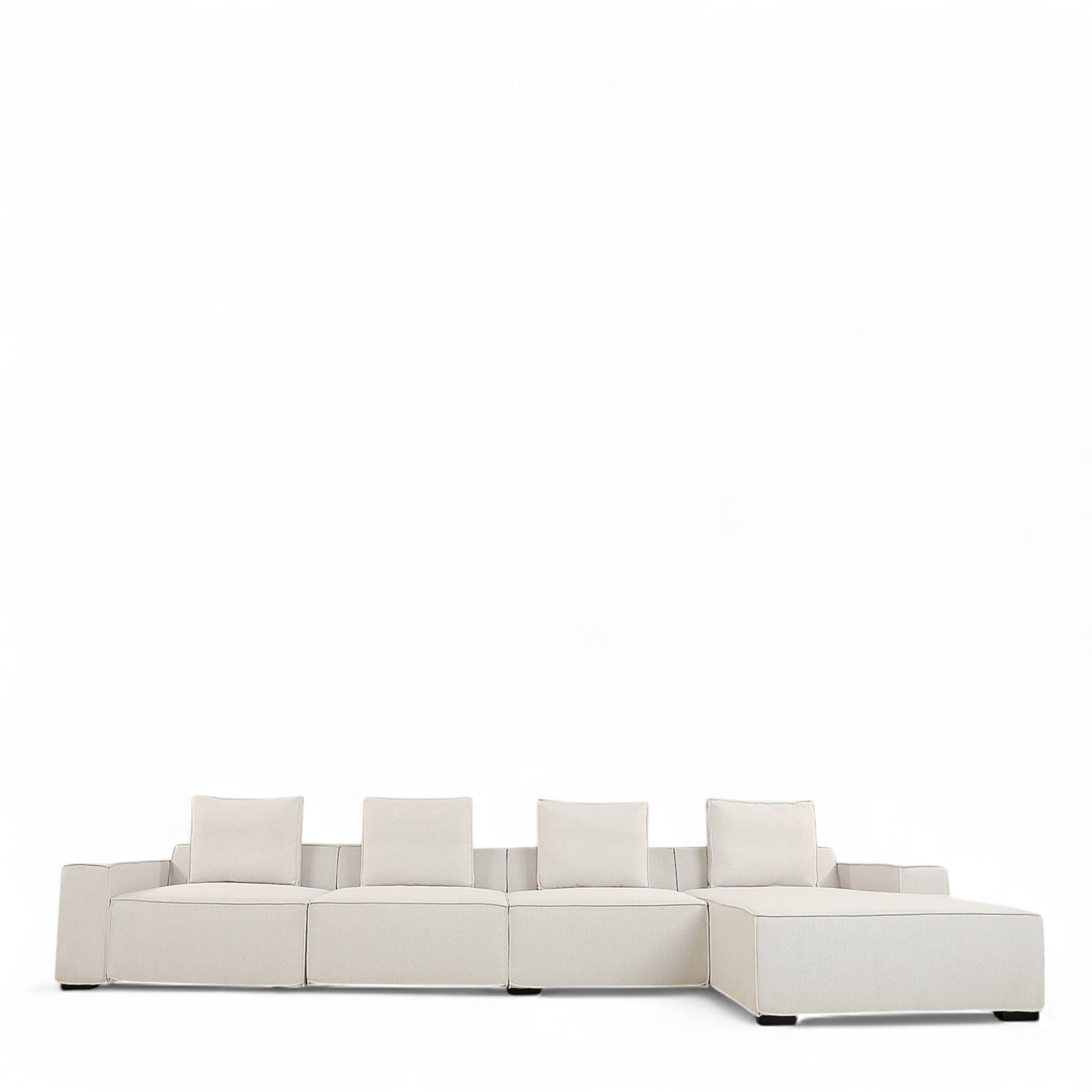 Cloudlike cushioning is the perfect complement to the squared-off frame of the River Sofa. Beautifully upholstered in linen, this sofa has loose back cushions and a streamlined look for contemporary appeal.