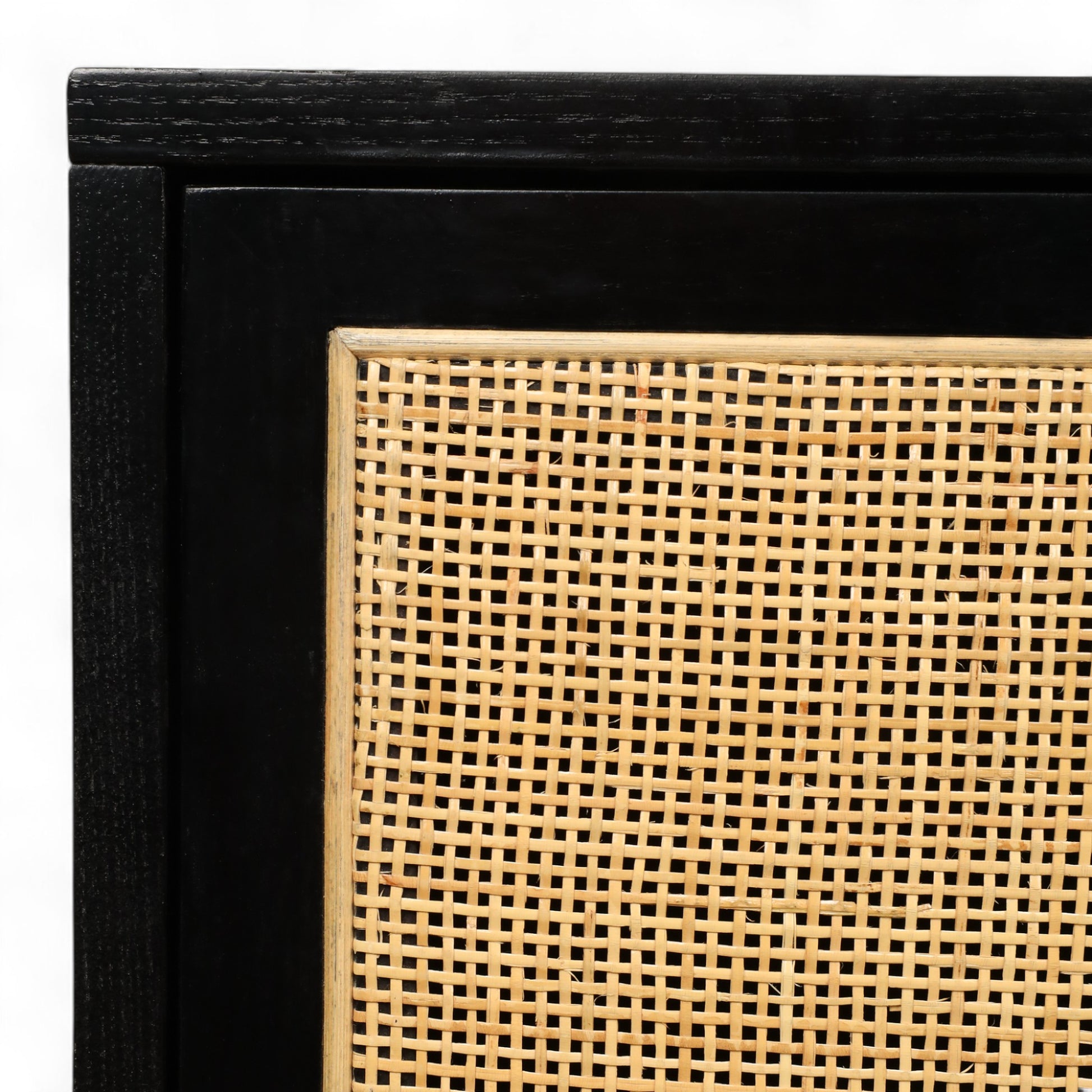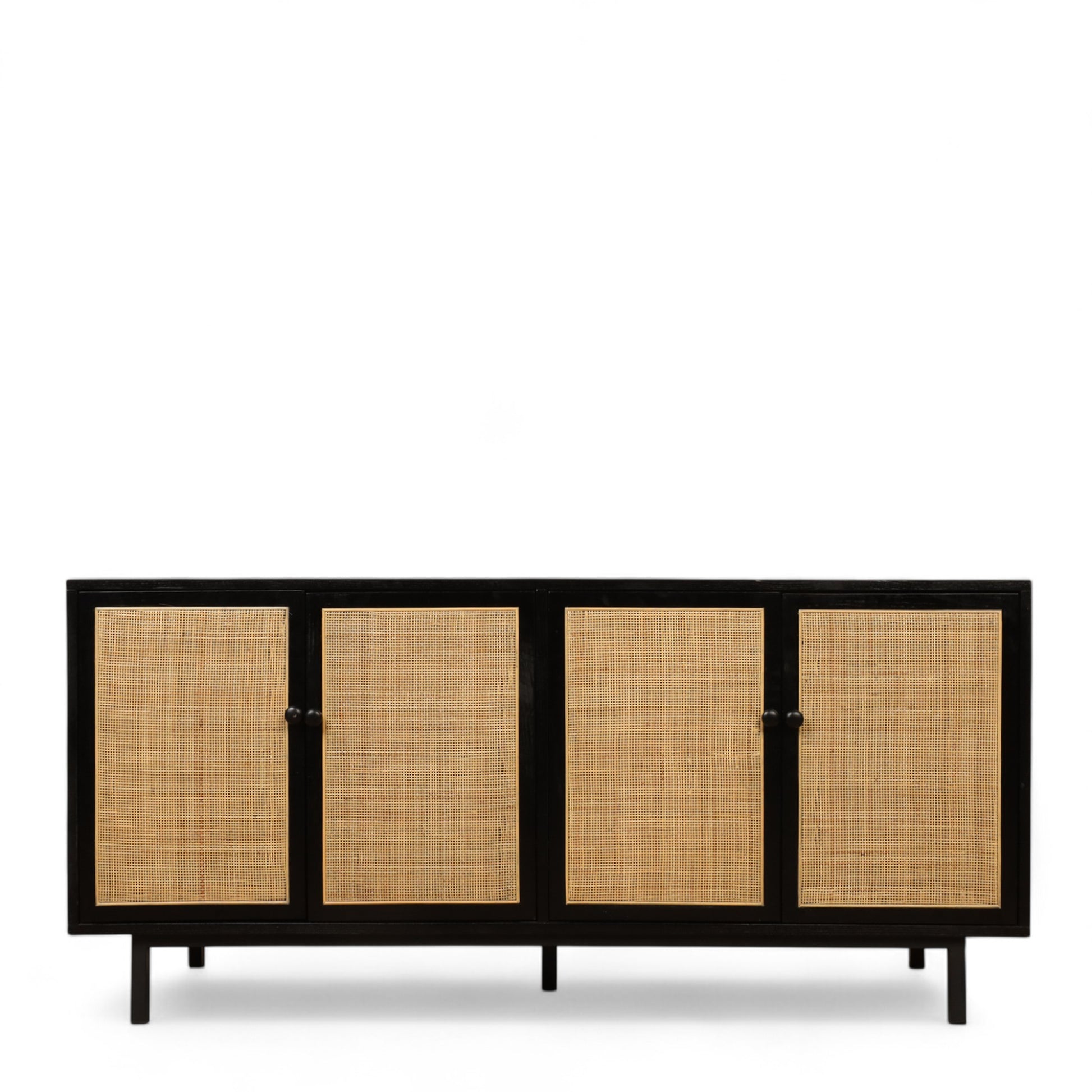Crafted with mid-century modern overtones the Selma Sideboard is thoroughly modern for the 21st century. Raised on slender legs for an elevated look this cabinet has wonderful contrast for sophisticated appeal. Four doors open to reveal abundant storage spacious ideal for electronic equipment, household goods, or serving pieces while the surface can accommodate a pair of lamps for an elegant finish.