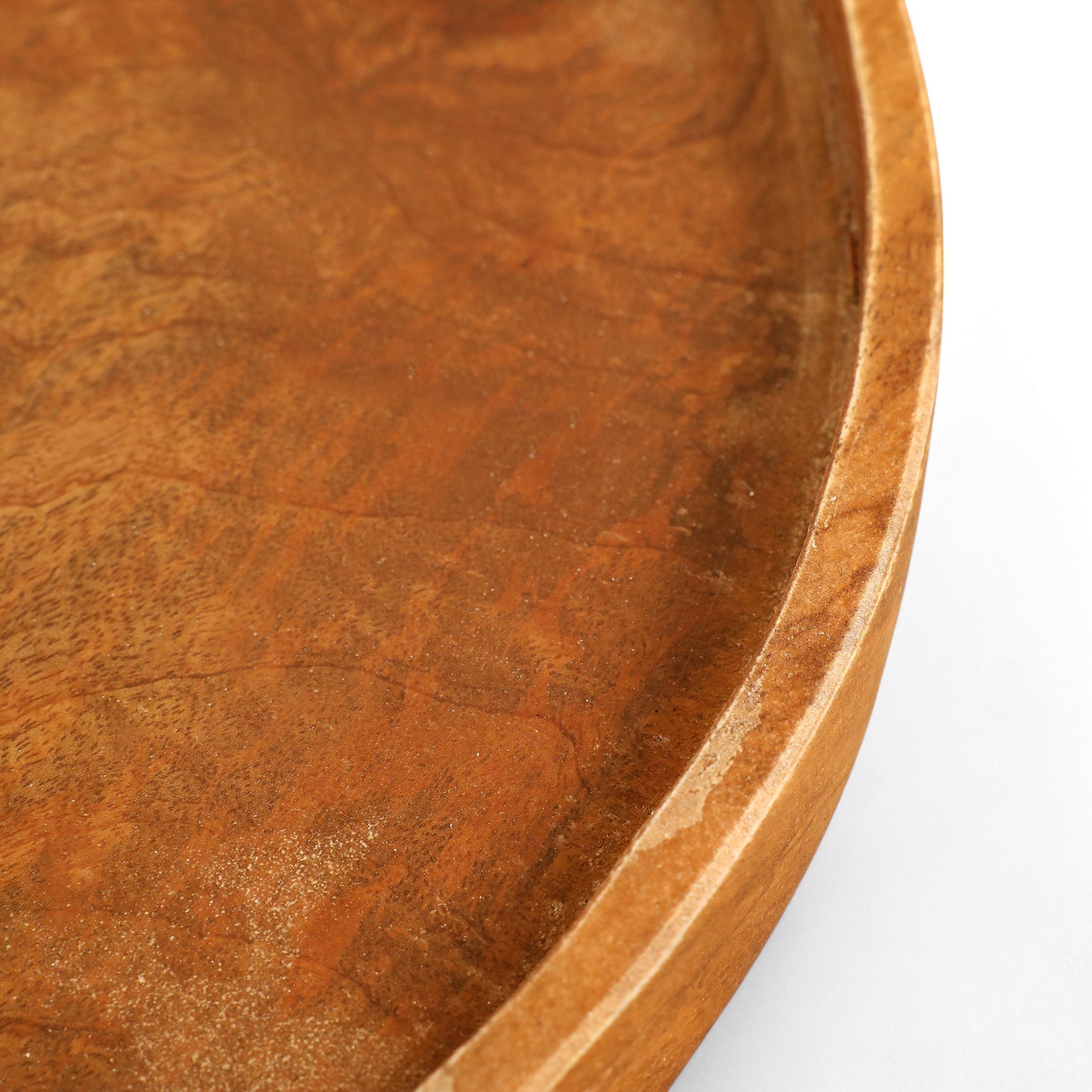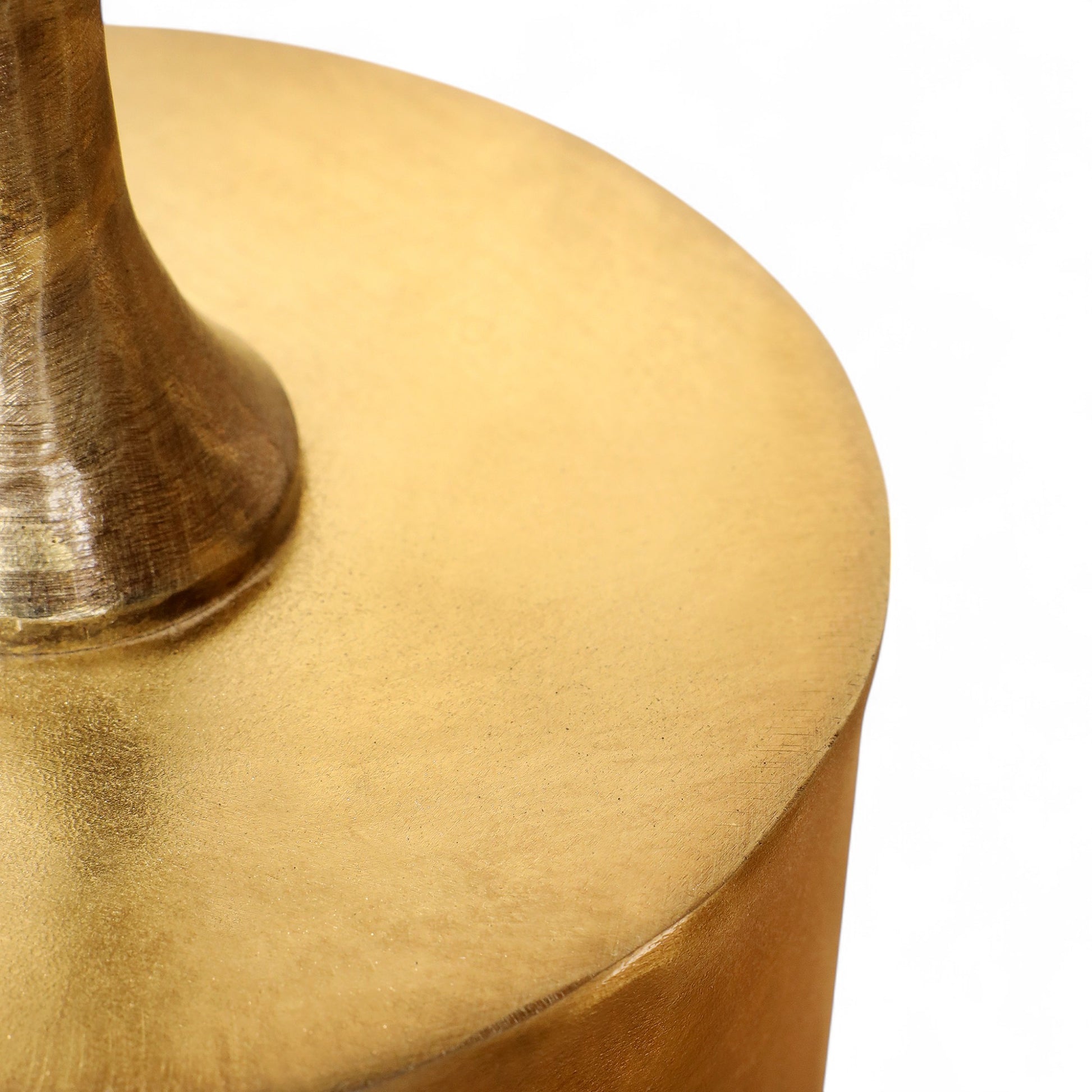 Perfectly paired natural wood and warm brass deliver interest and depth to this charming side table set. The round shape, beautiful materials, and simple design are great ways to accent a sofa or lounge chair for an elegant finish.