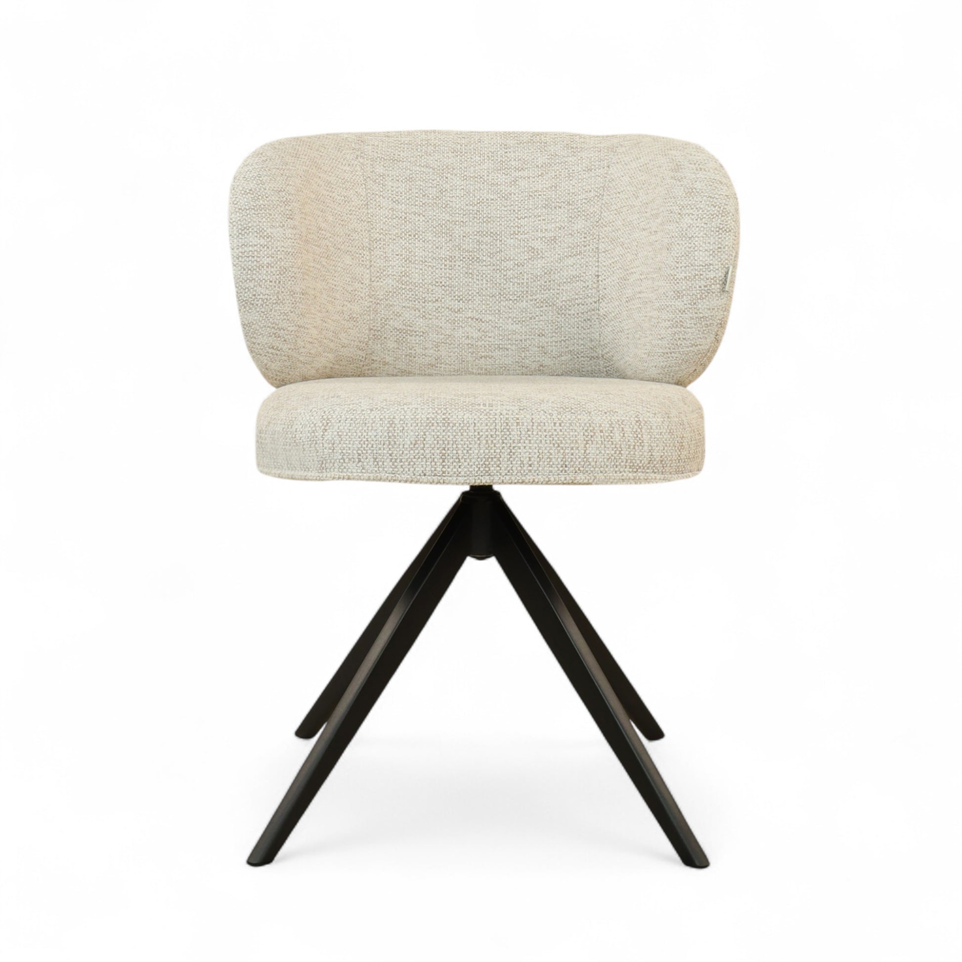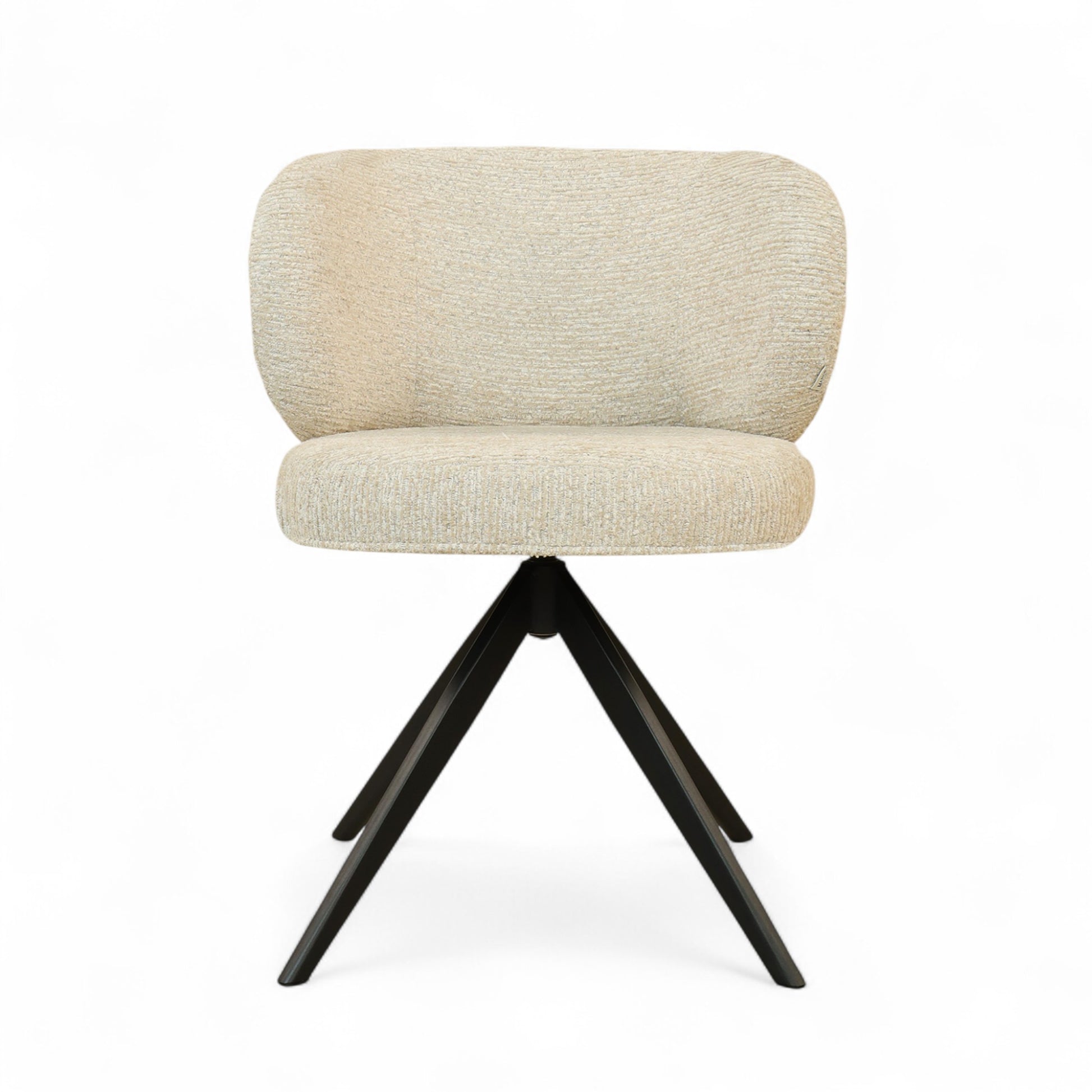 The Solis Dining Chair combines sleek plywood craftsmanship with soft fabric upholstery and a sturdy metal base, offering both comfort and durability.