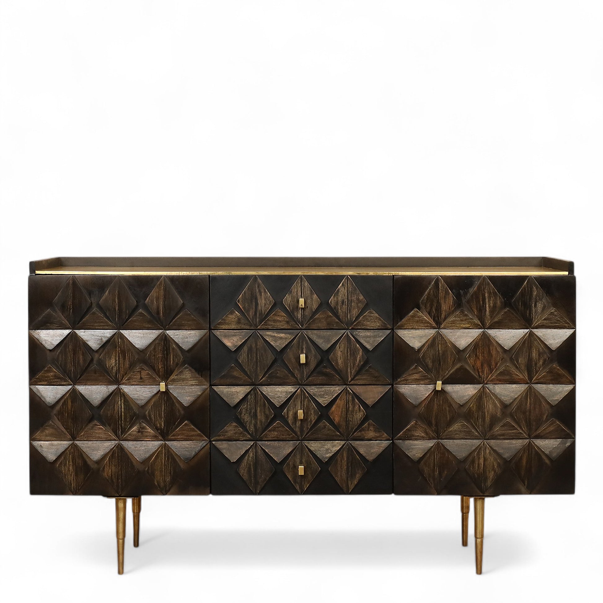 Note: Wooden Diamond Cut Design 2 Door 4 Drawer Sideboard With Brass Cladded Top.