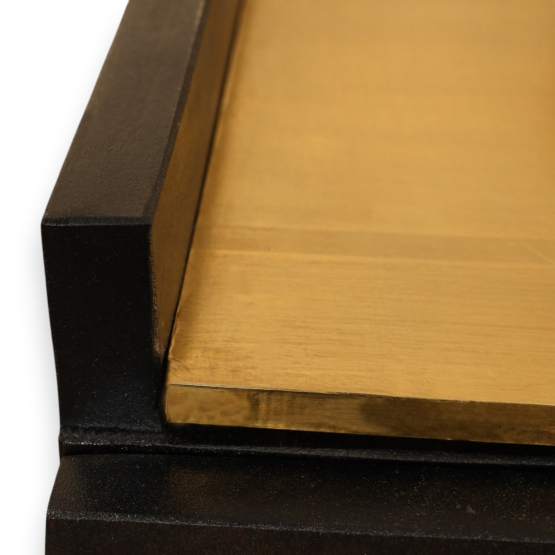 Dark wood contrasts beautifully with gleaming gold accents on this Wooden Sideboard. Crafted with a diamond design on the door fronts, this Cabinet has a metal base and handles for brilliant interest. Enjoy contemporary style and gorgeous storage with this handsome Wooden Sideboard.