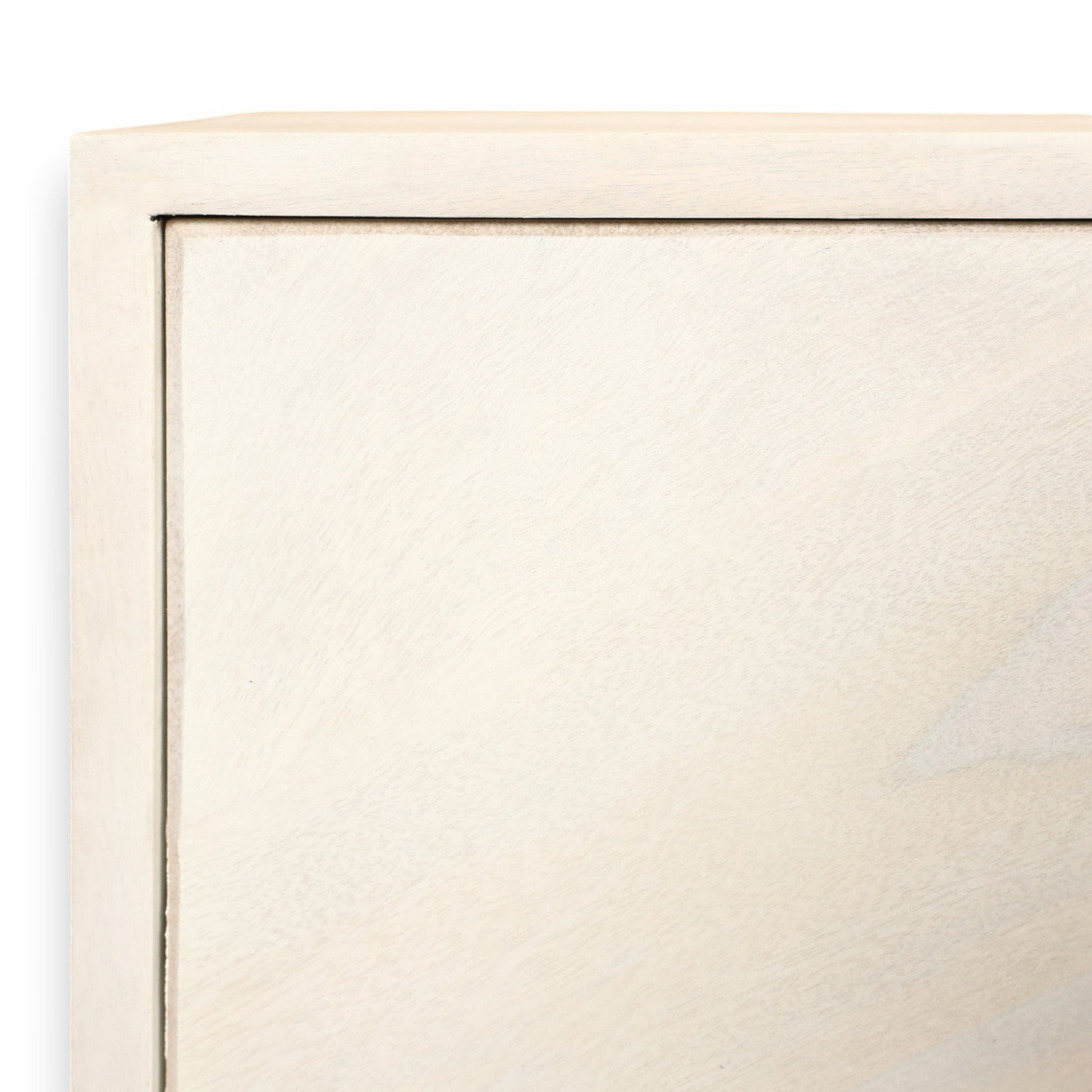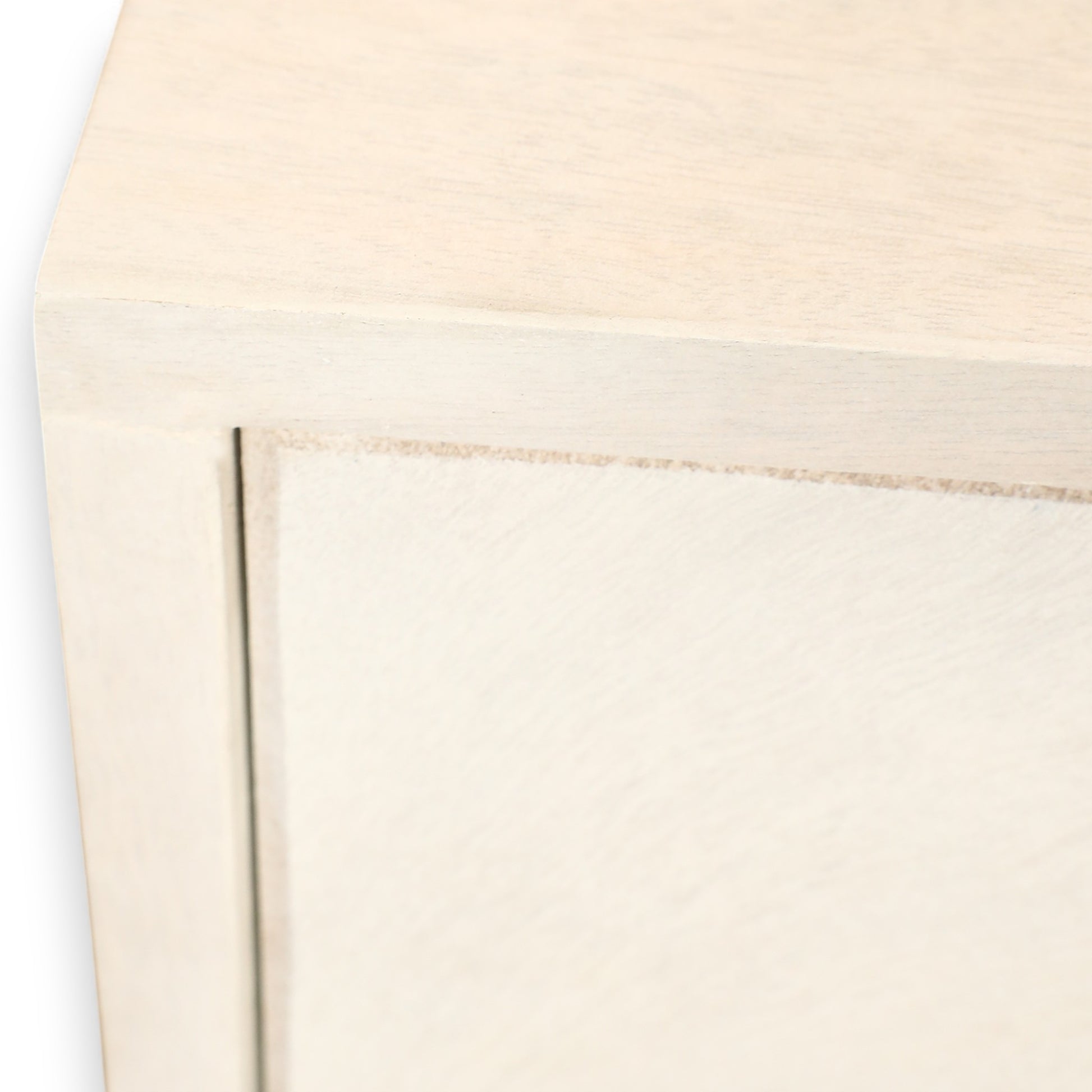 Store household items neatly out of sight with this minimalist Sideboard. Designed in wood with metal accents, it has two large cupboards and three drawers to hold everything from linens and clothes to dishes and serving pieces. Sleek and functional, this piece is ideal for a living space or dining room.
