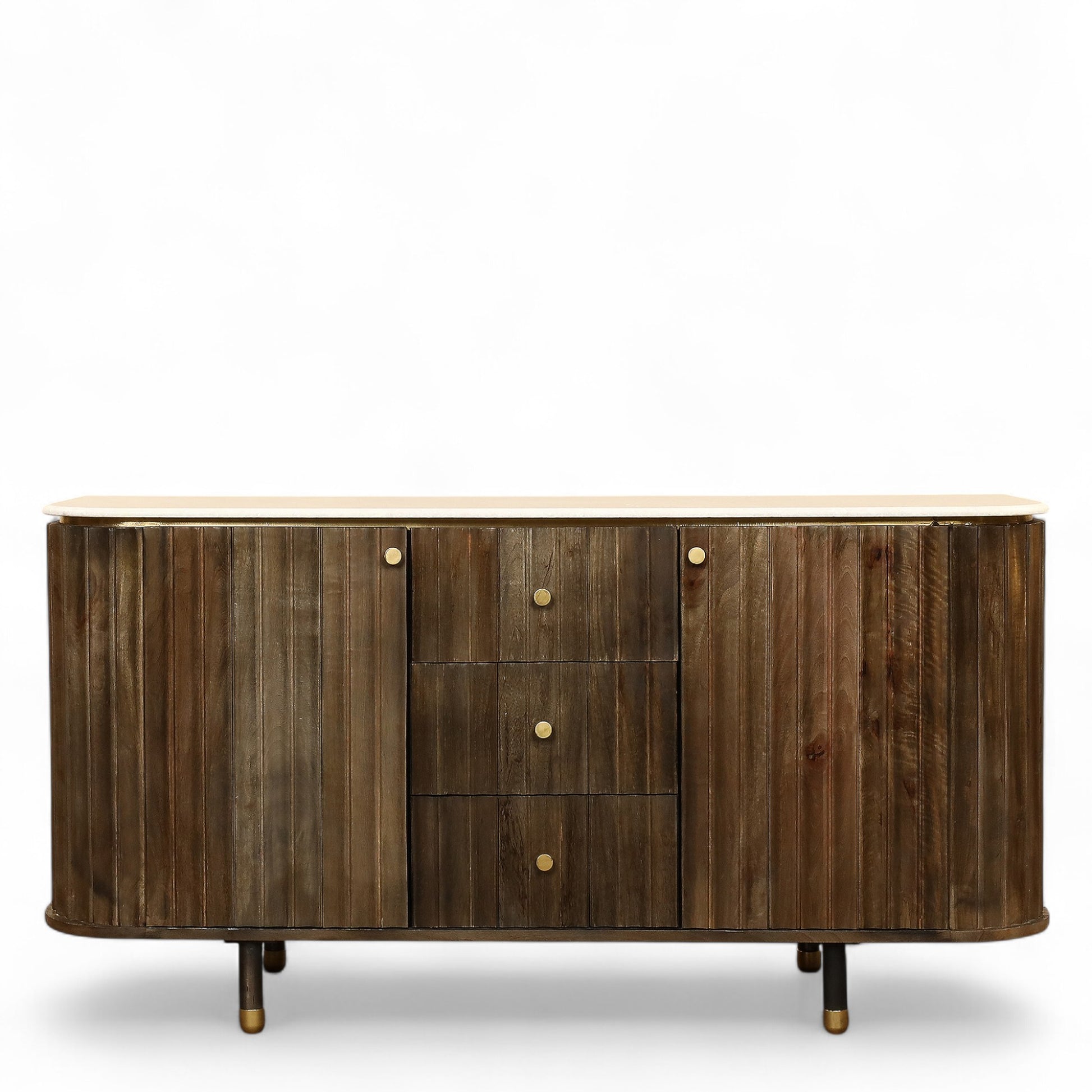 Note: Wooden Carved Design Sideboard With Marble Top and Metal Legs.
