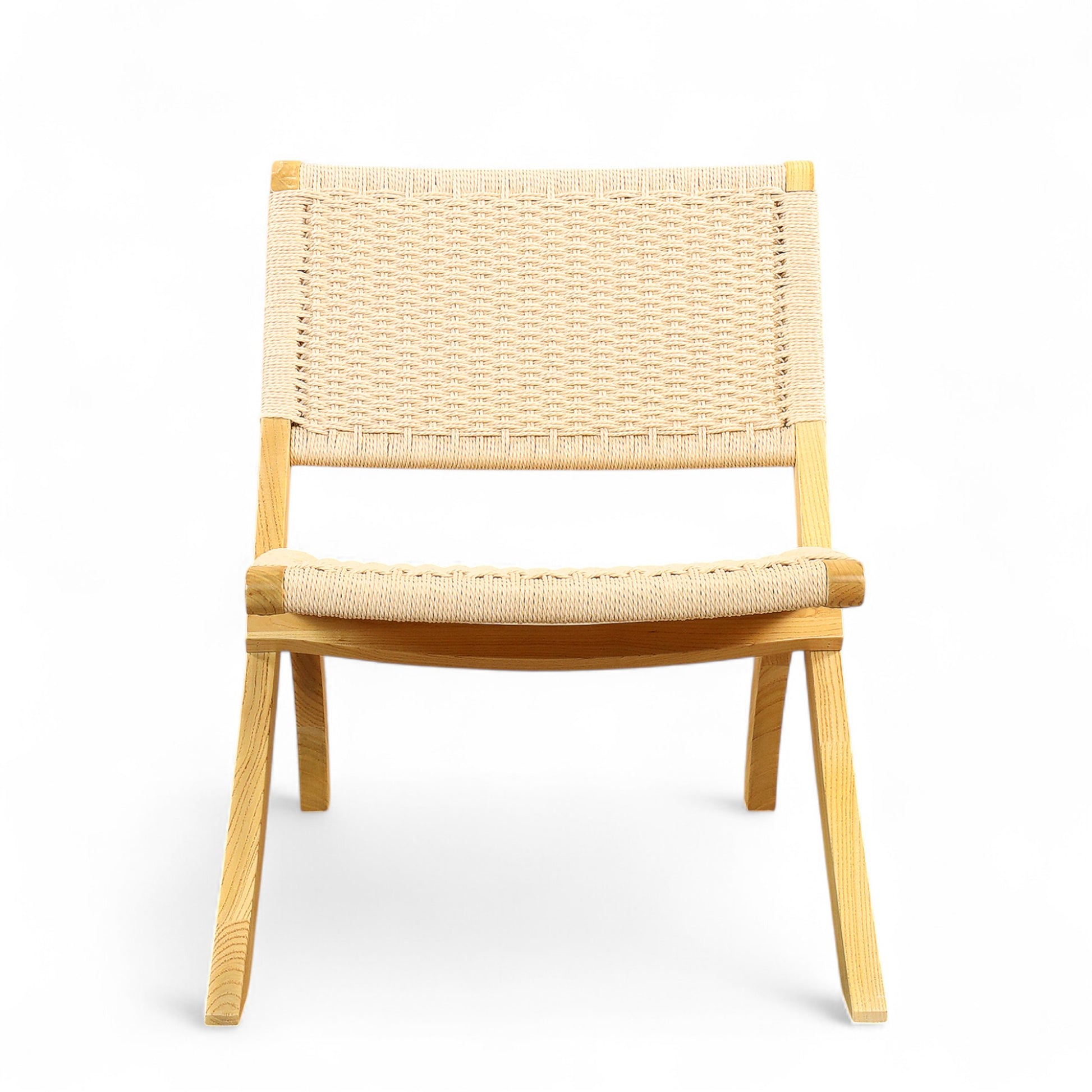 The Ylva Lounge Chair seamlessly blends modern comfort with a coastal charm. Featuring a light wood frame that adds a touch of airy elegance, this chair is crafted with a macrame rope seat and back that offers both visual interest and a relaxed, breezy feel. The intricate macrame design enhances its coastal vibe, while the overall aesthetic maintains a clean, contemporary look. Perfect for a casual living space or a serene seaside retreat, the Ylva Lounge Chair invites you to unwind in style and embrace laid-back sophistication.